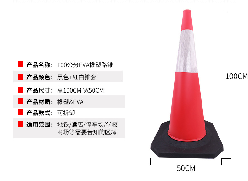 100cm 도로 콘 1 m EVA 반사 콘 고무베이스 EVA 도로 콘 아이스크림 콘 도로 경고 콘 길막스토어 가기
