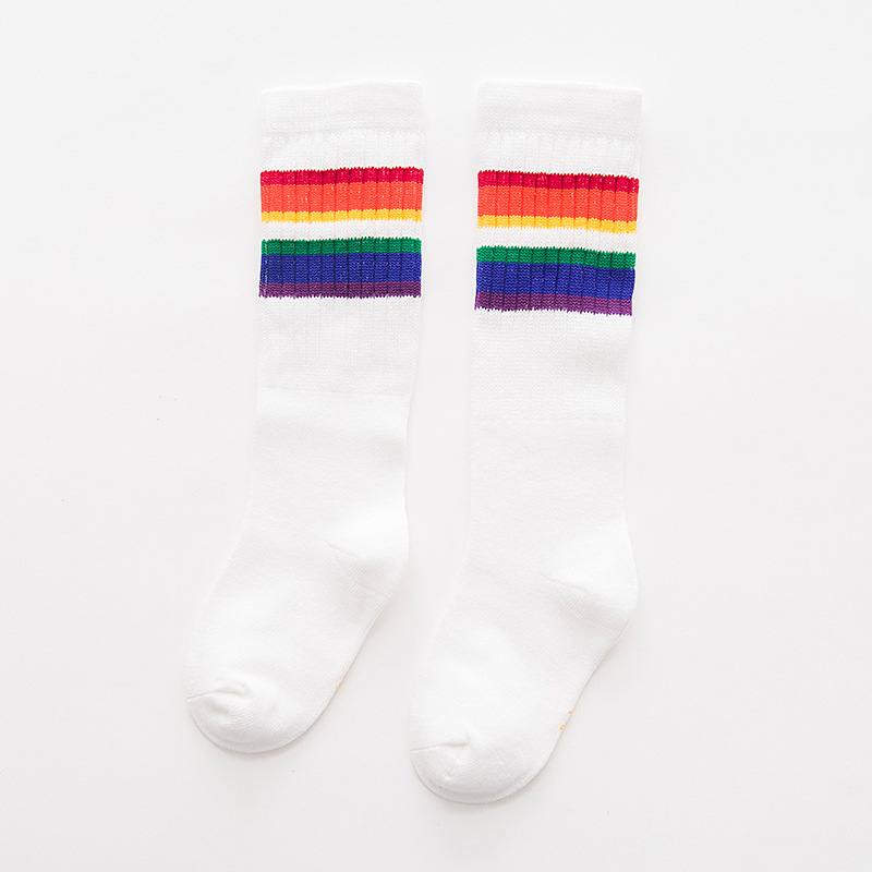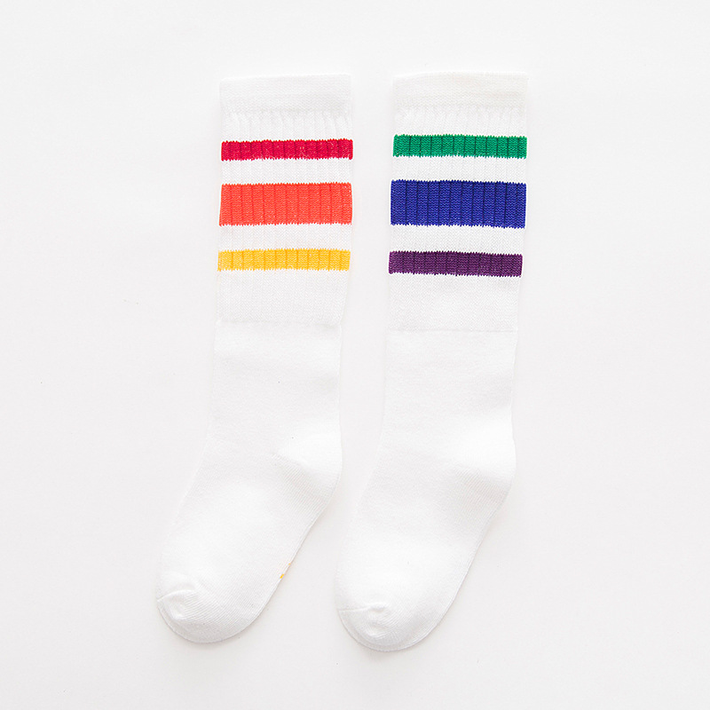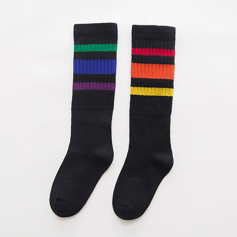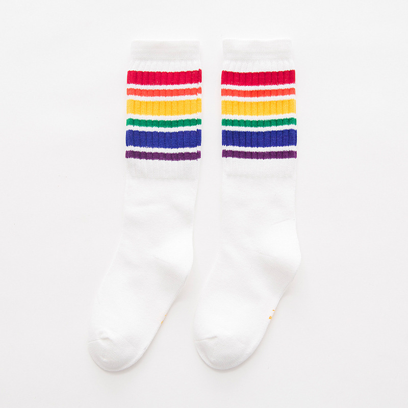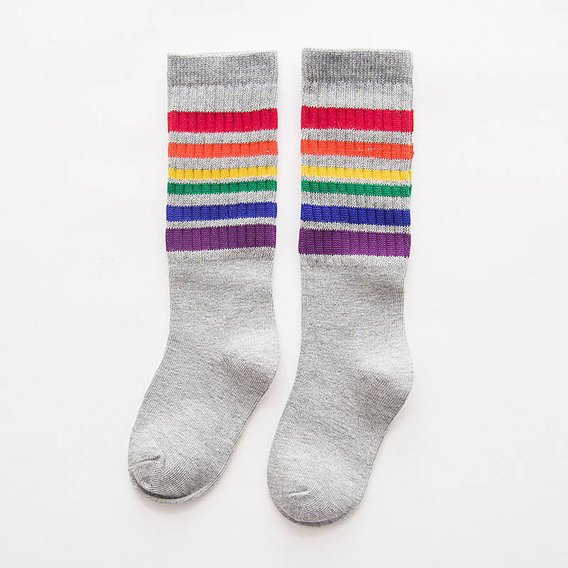 19 봄과 가을 새로운 어린이 양말 패션 줄무늬 조수 어린이 양말 무지개 송아지 양말 머리카락 세대