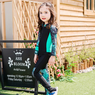 부모-자녀 아동 수영복 새로운 스타일의 소년 소녀용 스플릿 긴팔 바지 비치 프린트 자외선 차단 속건 수영복스토어 가기