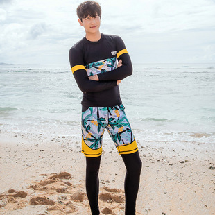 부모-자녀 아동 수영복 새로운 스타일의 소년 소녀용 스플릿 긴팔 바지 비치 프린트 자외선 차단 속건 수영복