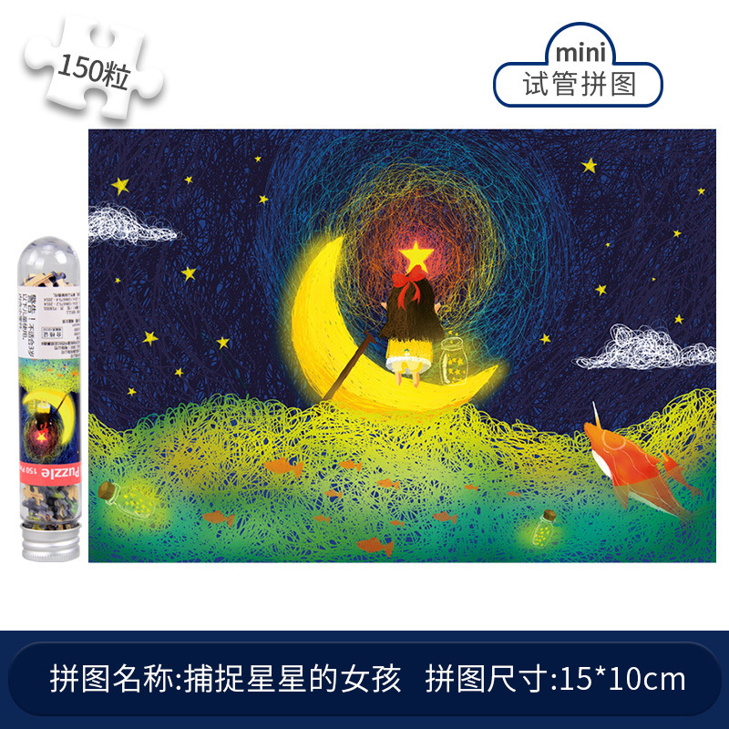 공장 직접 미니 시험관 성인 퍼즐 150 타이틀 페인팅 풍경 별이 빛나는 하늘 어린이 교육 장난감 선물