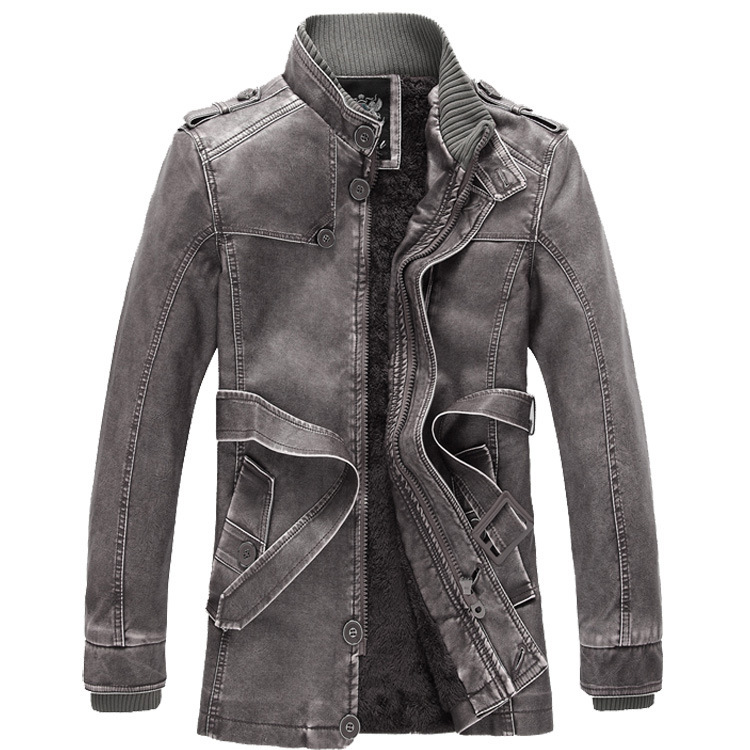 공장 직접 유럽 및 미국 롱 스탠드 칼라 PU 가죽 자켓 개인 세탁 남성 오토바이 가죽 자켓 플러스 벨벳 자켓