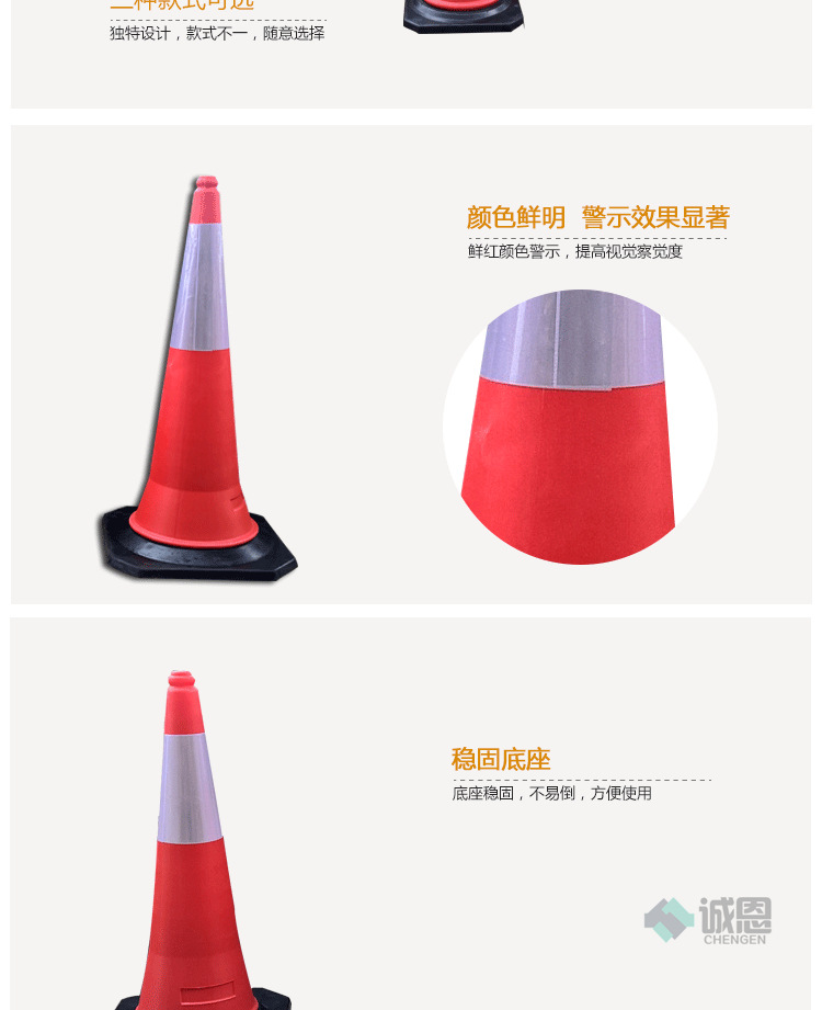 关于产品:此款路锥有些规格有橡塑底与橡胶底可选,具体下面有介绍。