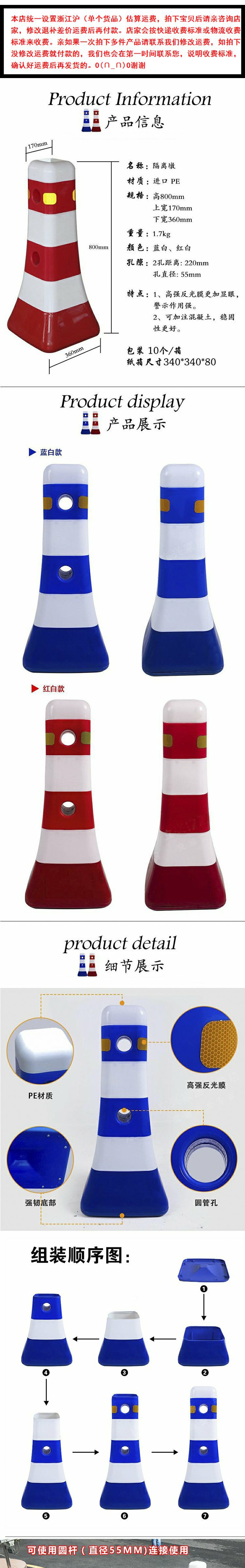 파란색과 흰색 절연 부두 플라스틱 빨간색과 흰색 경고 부두 도로 보호 장벽 교통 장벽 충돌 방지 버킷스토어 가기