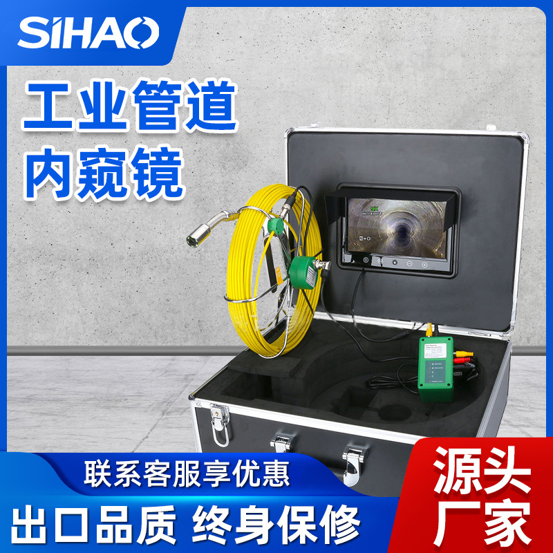 管道检测内窥镜将带摄像头的探头与9英寸液晶显示器相结合,用于观察到达的检测区域。皮革遮阳板为室外检查提供清晰的视野,并为显示器提供保护。它配有一个盒子用于放置套件,便于运输和使用。