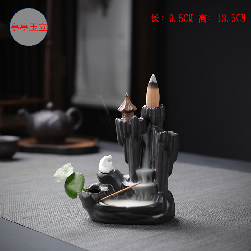 세라믹 역류 향 버너 창조적 인 장식품 다용도 수경 꽃 보라색 모래 향 버너 백단향 버너 머리카락의 세대