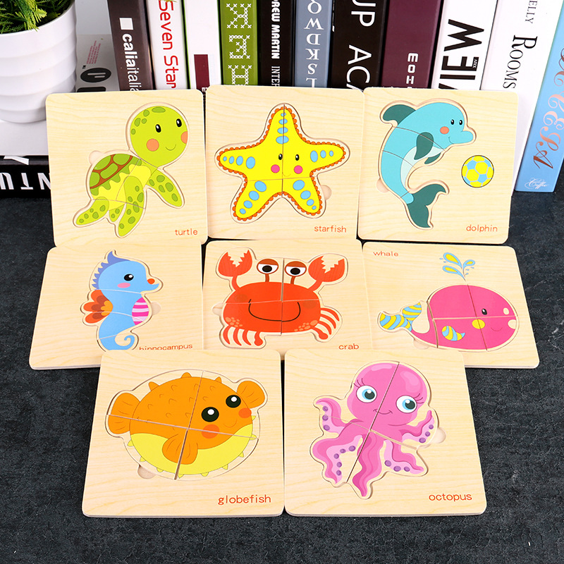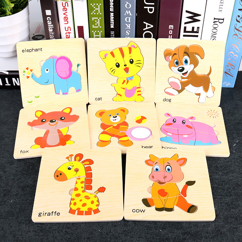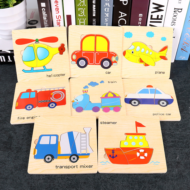 나무 간단한 퍼즐 세트 동물 교통 어린이 교육 장난감 아기 지능 개발 조기 교육인지스토어 가기