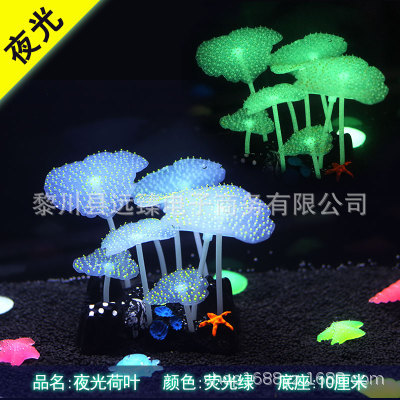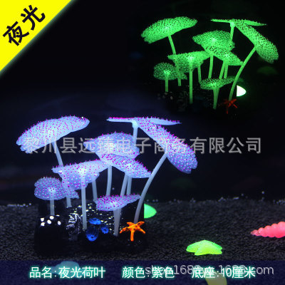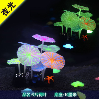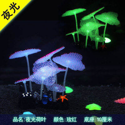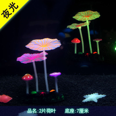 어항 풍경 장식 시뮬레이션 발광 형광 연잎 버섯 말미잘 풍경 물 풀 도매 털스토어 가기