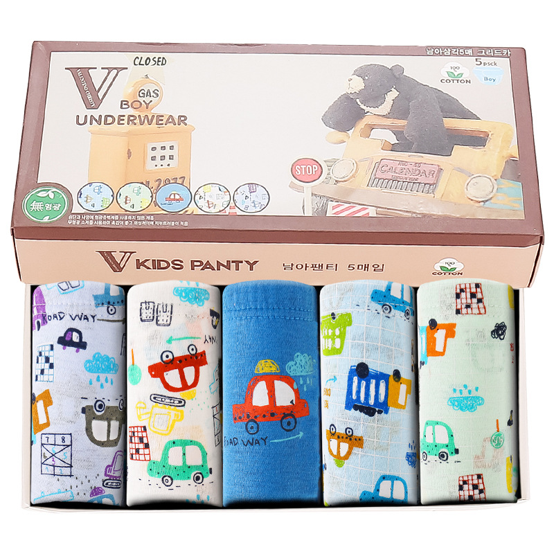 어린이 속옷 면 소년 속옷 면 삼각형 중형 및 대형 어린이 엉덩이 랩 바지 머리 남성 아기 만화 자동차 반바지스토어 가기