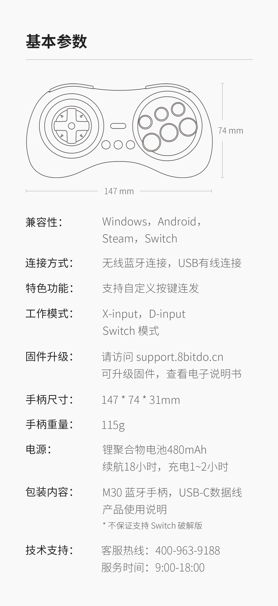 8 비트 홀 8bitdo M30 블루투스 핸들 NS 컴퓨터 MAC 스팀 격투 게임 6 키 버스트