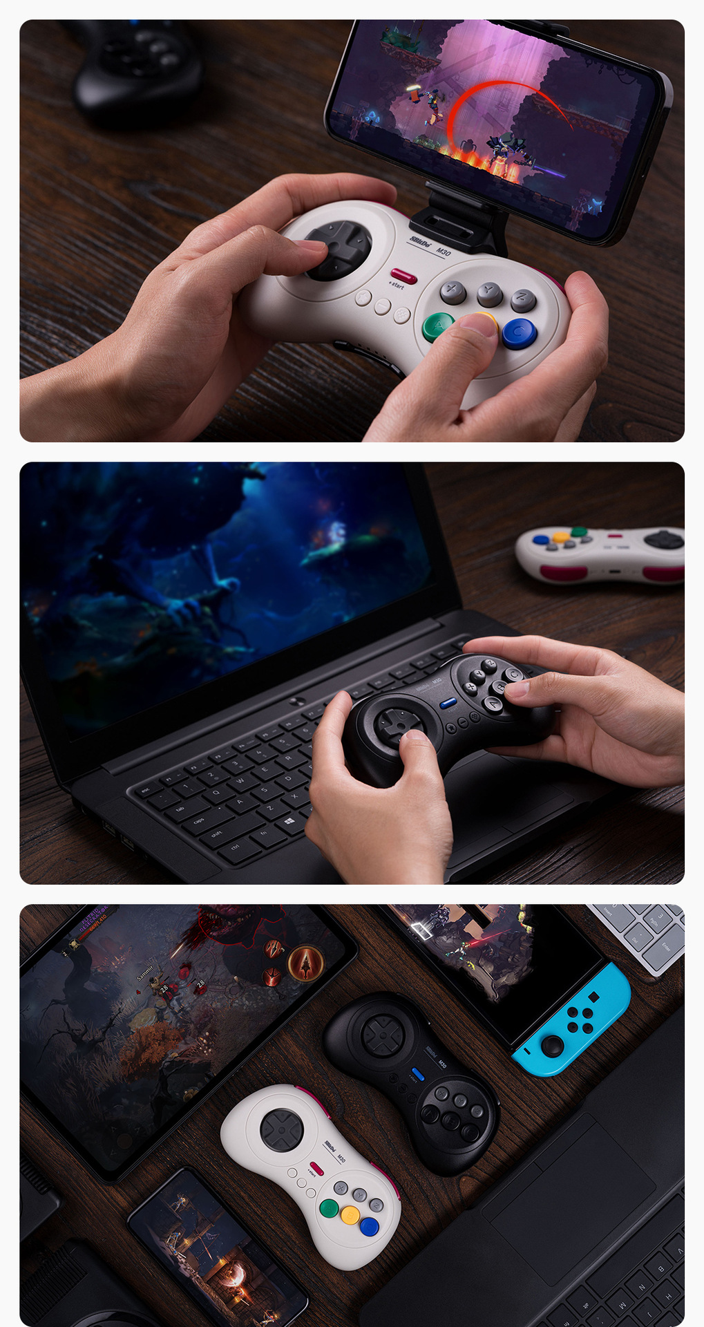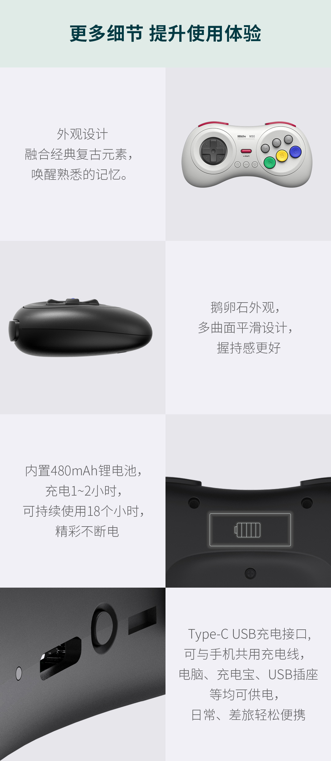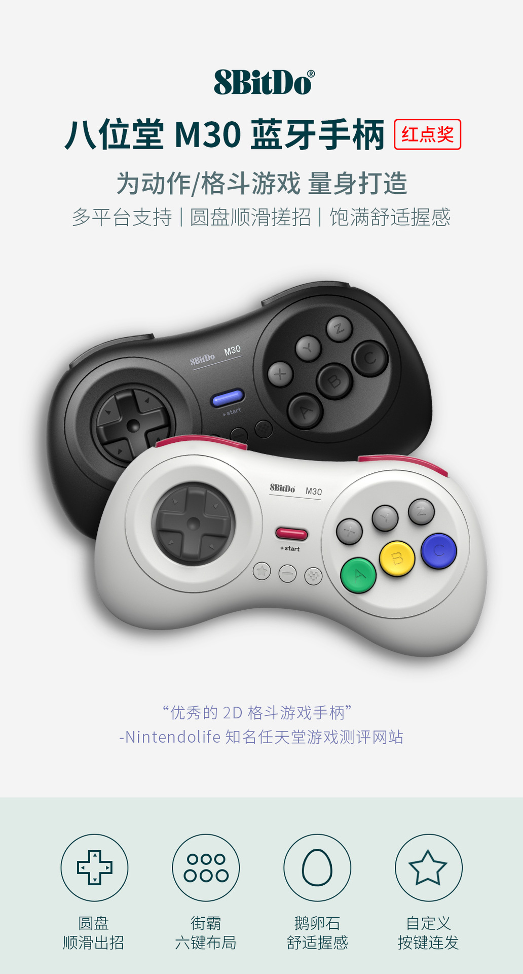 8 비트 홀 8bitdo M30 블루투스 핸들 NS 컴퓨터 MAC 스팀 격투 게임 6 키 버스트스토어 가기