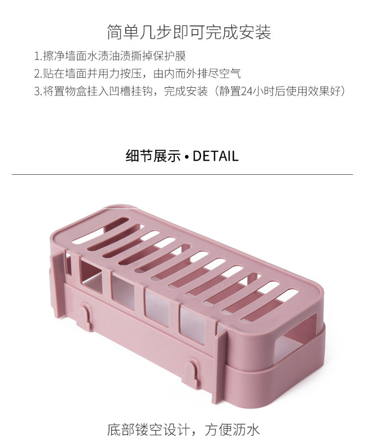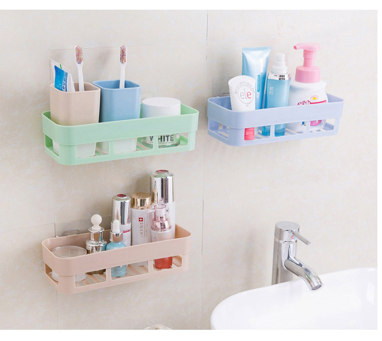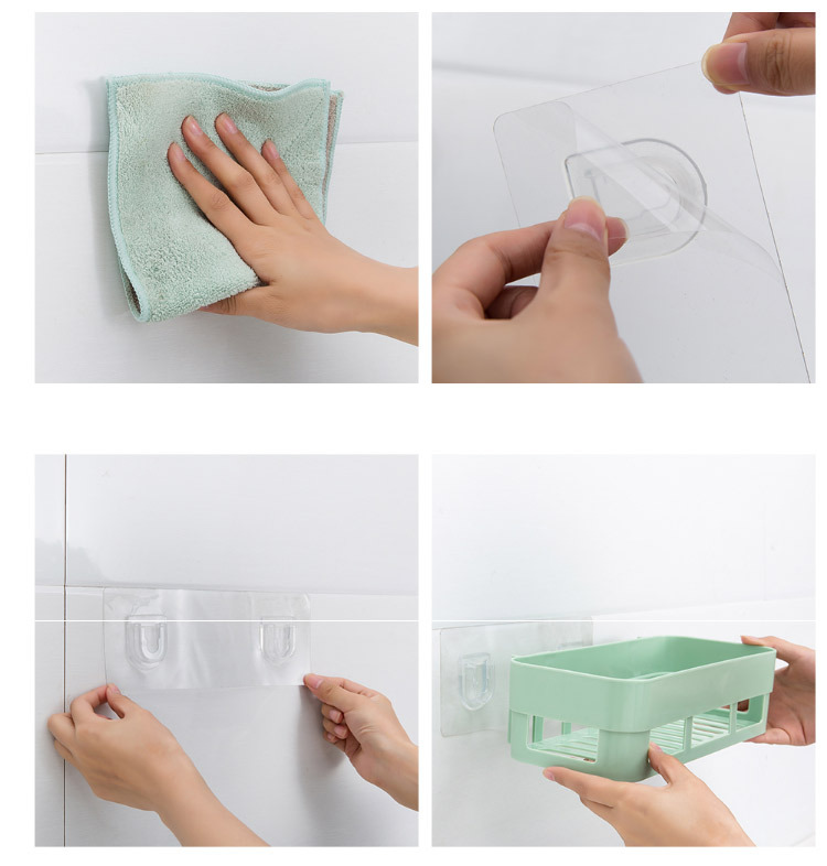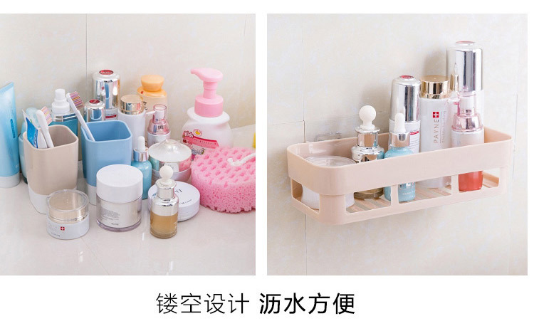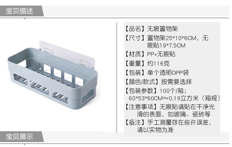 产品:浴室无痕置物架(产品后背贴片为透明款)