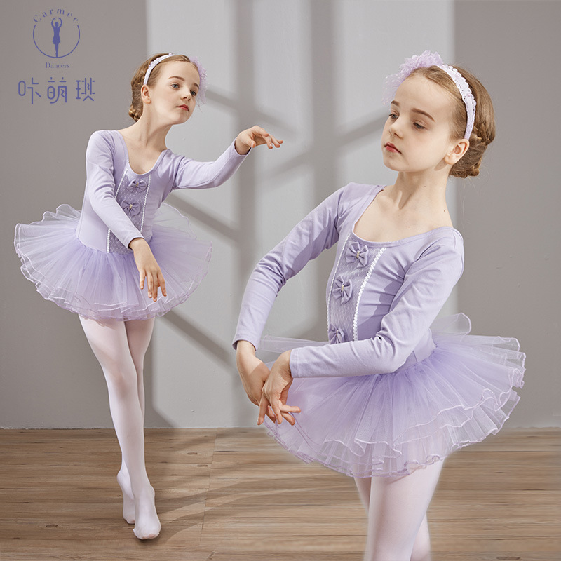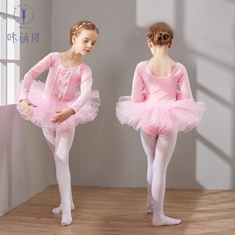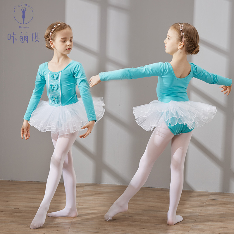 아동용 댄스 의상, 여아용 긴팔 연습복, 유치원 발레 거즈 스커트, 여아 댄스 시험 공연 의상스토어 가기