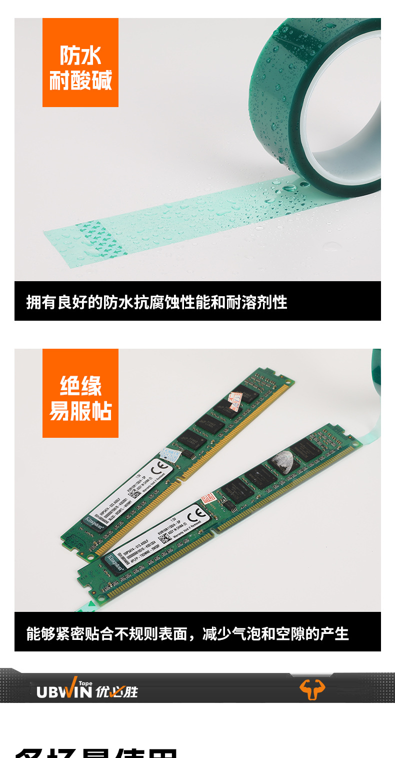 PET 녹색 고온 테이프 알루미늄 접합 유리 PCB 회로 기판 전기 도금 자동차 페인트 추적 없는 마스킹 테이프