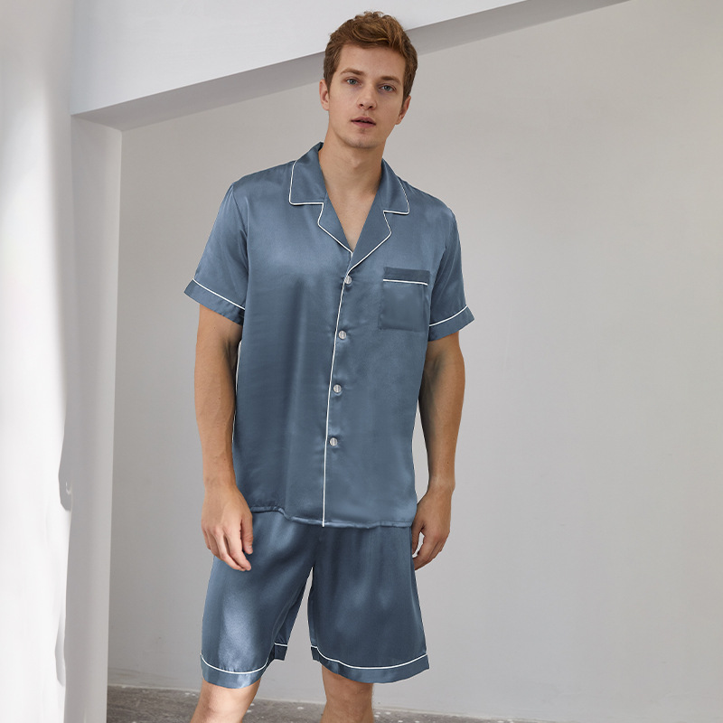 19 Mmi 남자의 반소매 반바지 무거운 실크 잠옷 세트 여름 편안한 뽕나무 실크 가정 옷 잠옷
