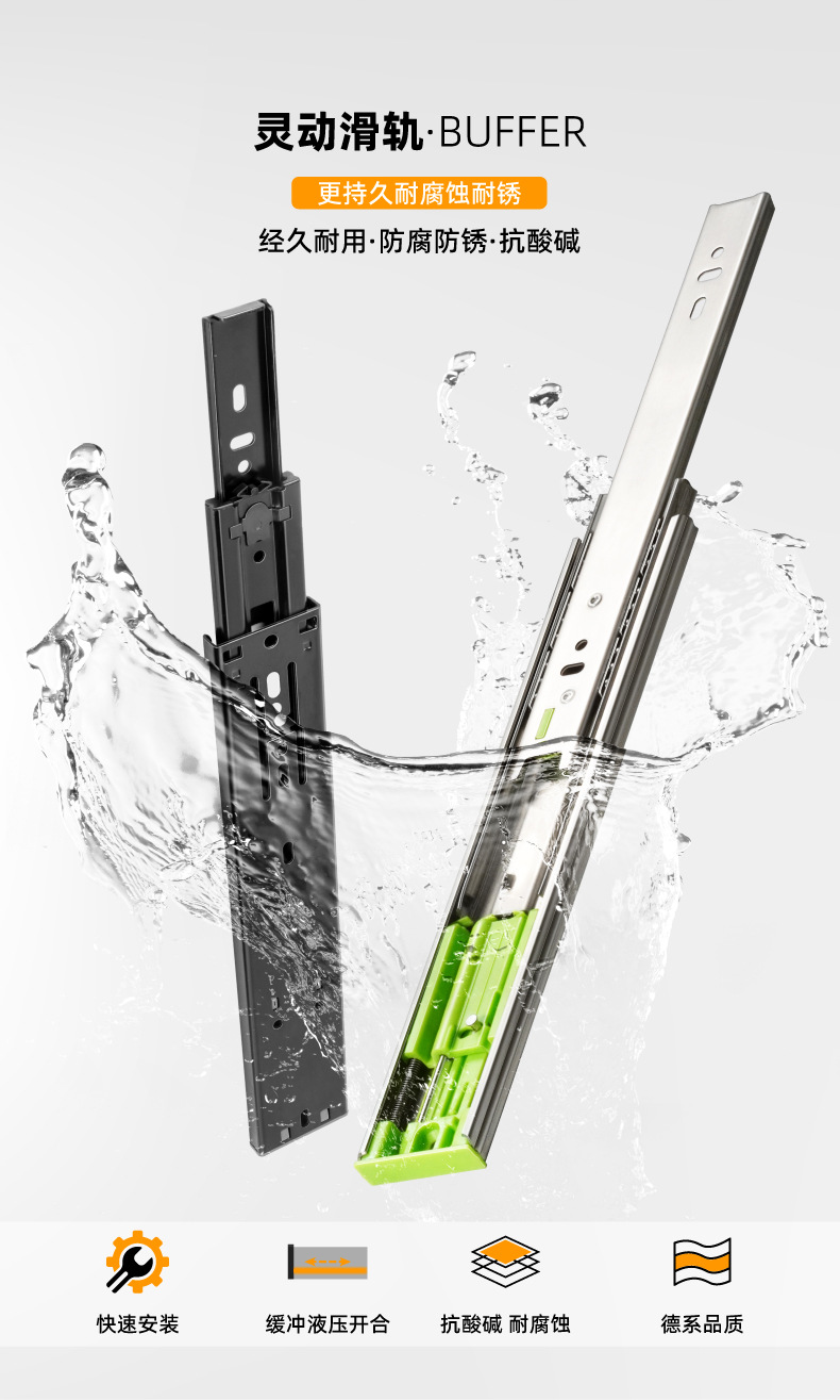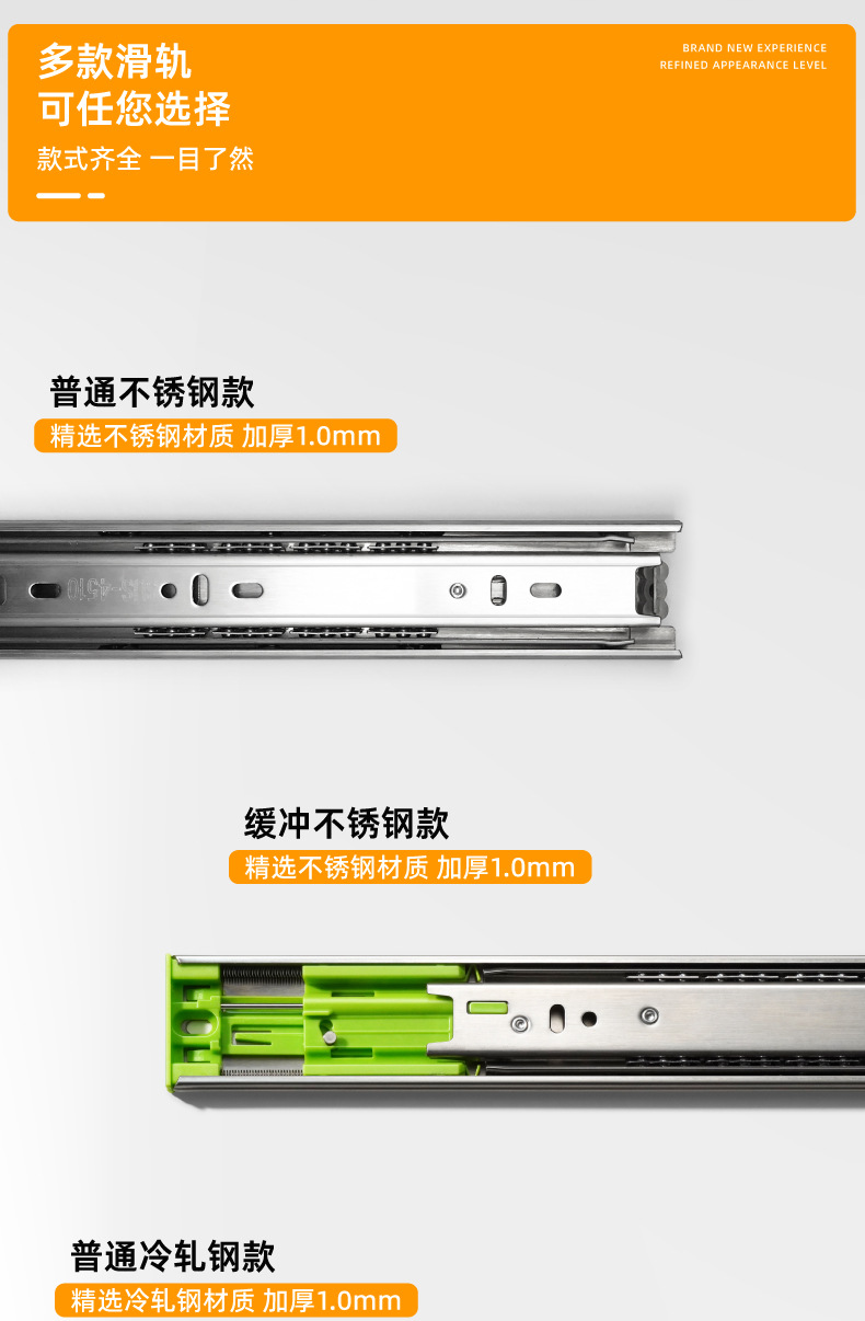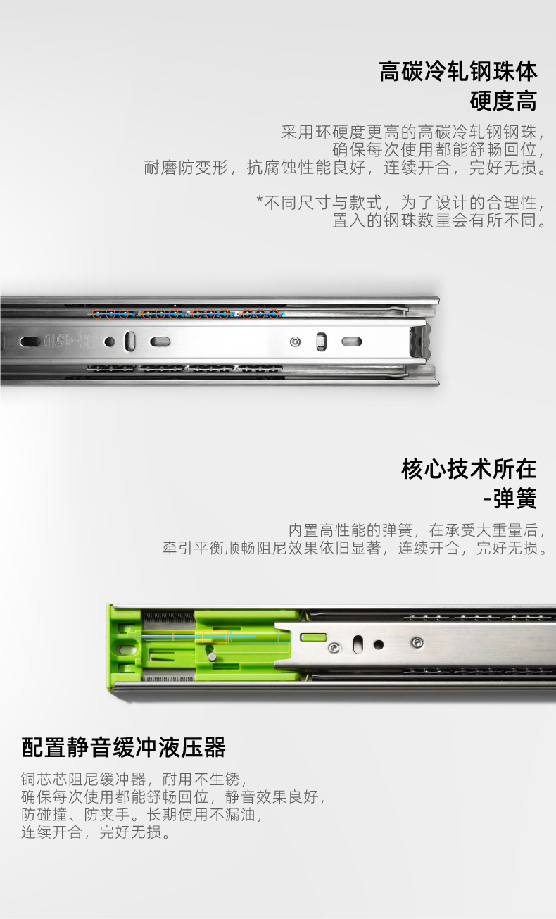 서랍 스테인레스 스틸 슬라이드 버퍼 댐핑 레일 가구 캐비닛 레일 옷장 스틸 볼 3 섹션 레일 제조 업체 직접 공급스토어 가기