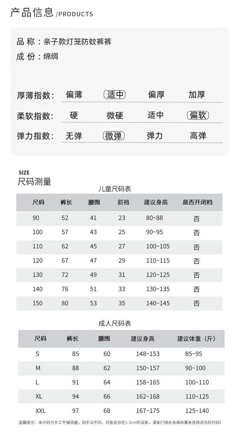 새로운 여름 어린이 바지 중소 어린이 면 실크 모기 방지 바지 블루머 아기 에어컨 바지 부모-자식 모기 방지 바지