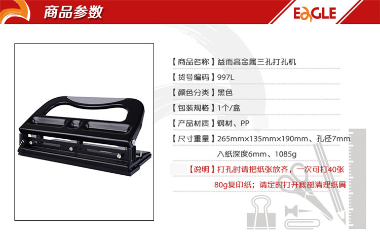 益而高档案试卷打孔机 资料文件装订40张圆形三孔活页重型打孔器