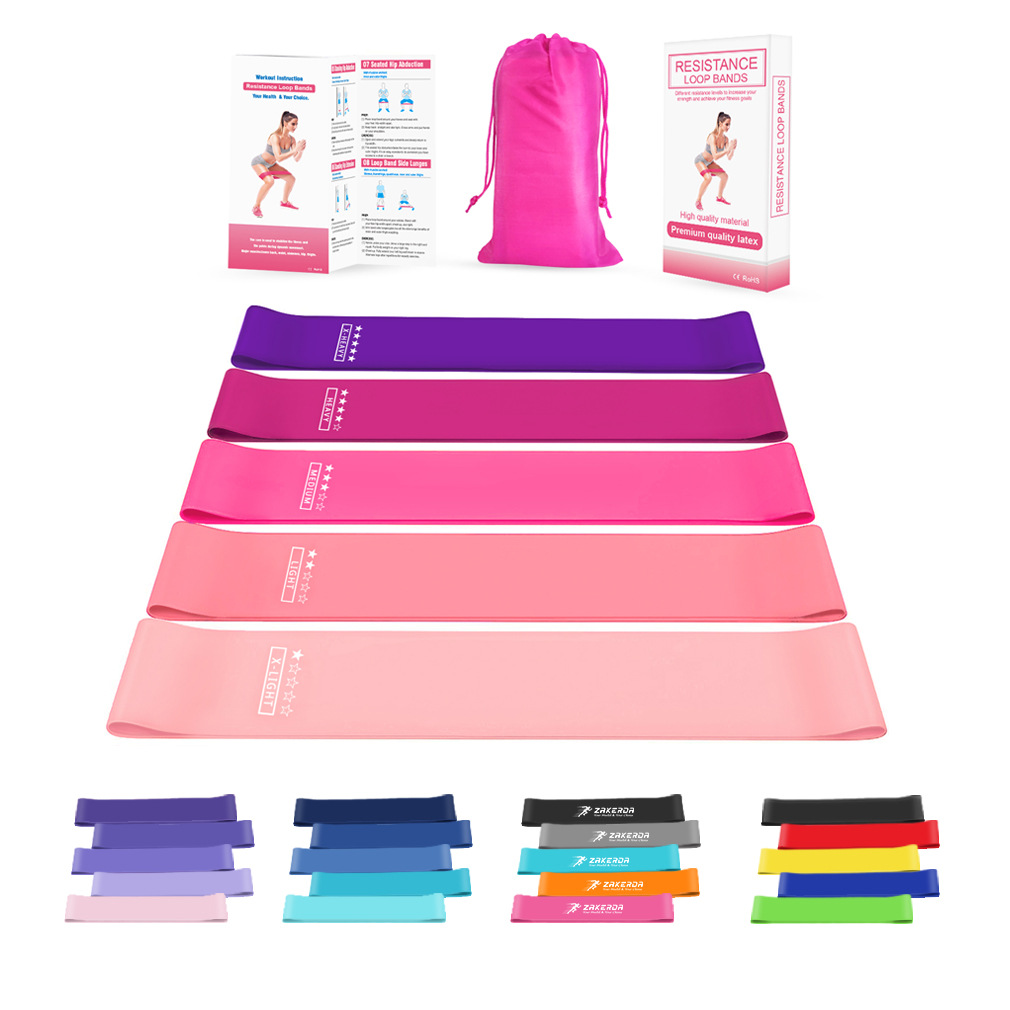 5条不同颜色不同厚度的拉力带+布袋+说明书同时装入彩盒