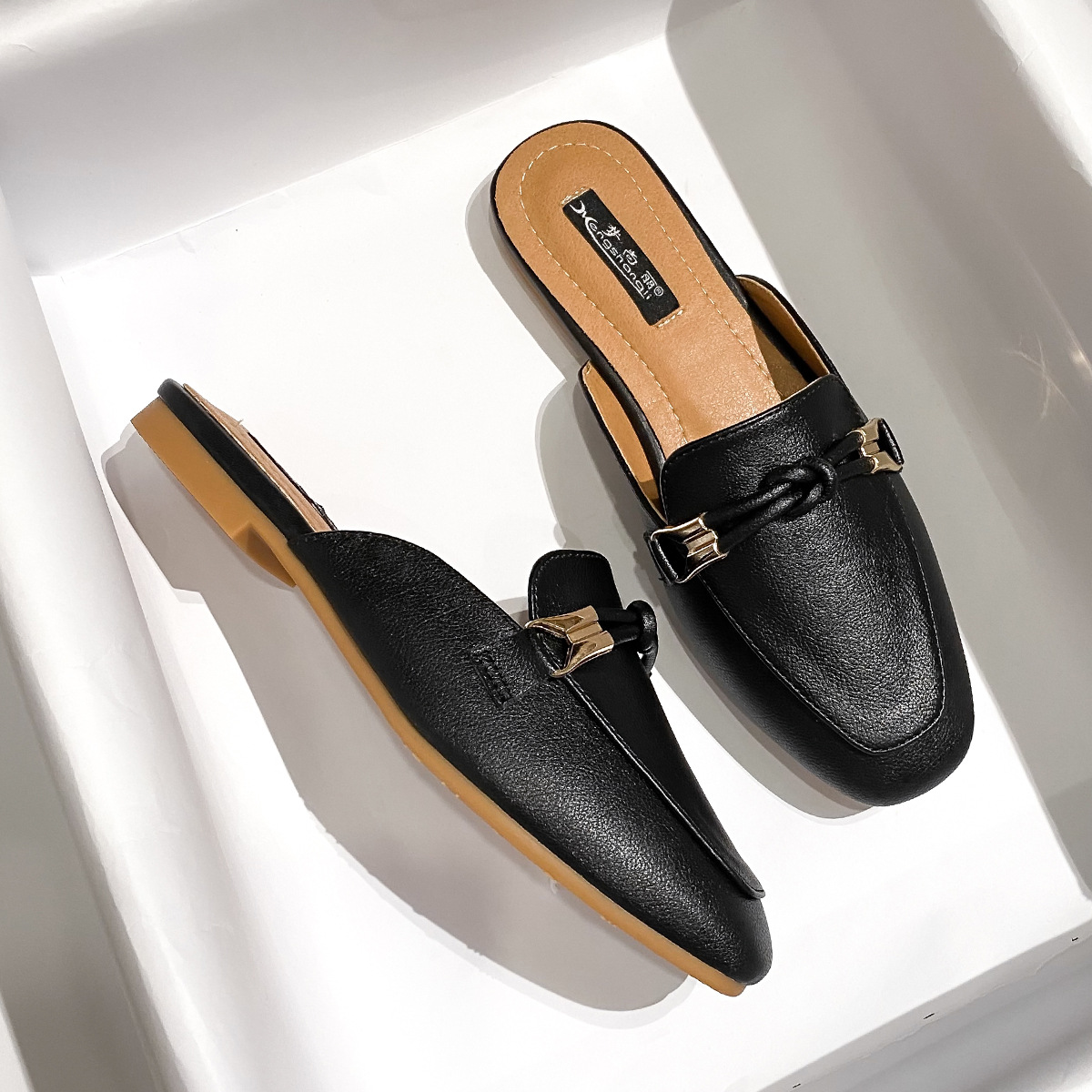 Baotou 하프 슬리퍼 여성용 여름 유행 아우터 2023 새로운 스타일 플랫 홍콩 스타일 힐 프리 아우터 게으른 사람들 사이버 연예인 샌들스토어 가기