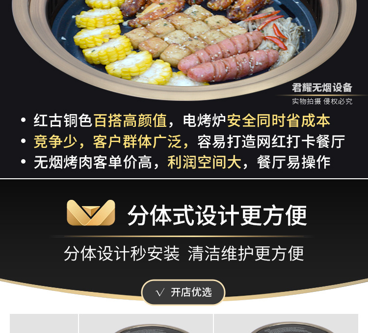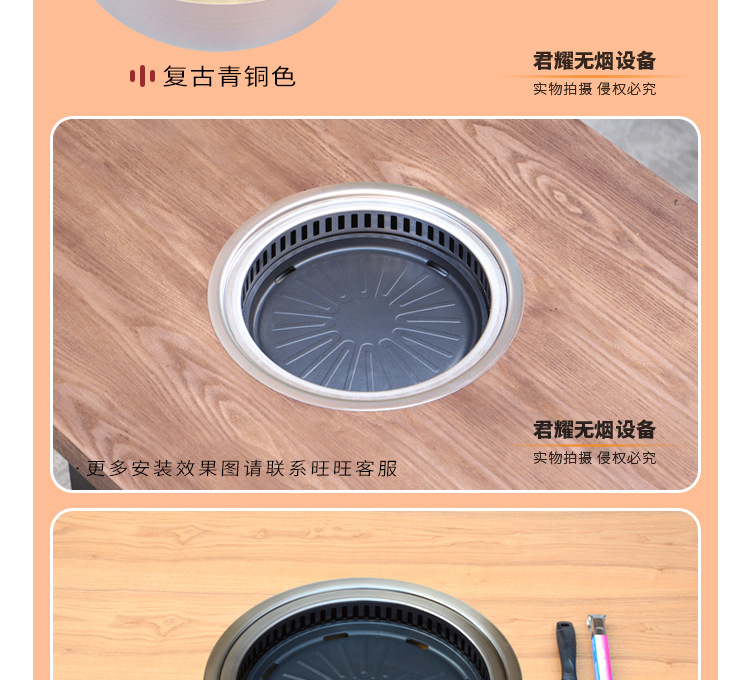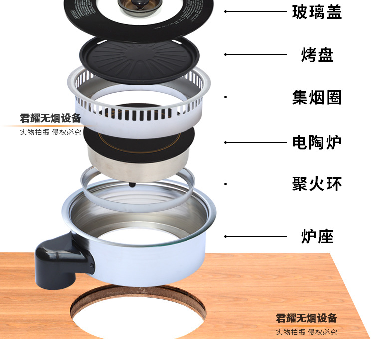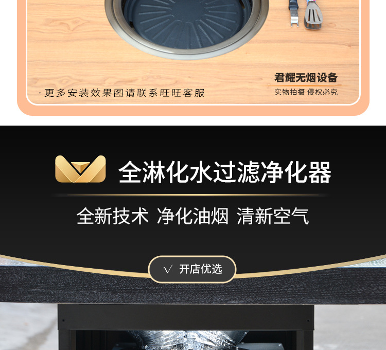 지능형 한국식 셀프 서비스 무연 전기 바베큐 스토브 상업용 라운드 하단 배기 담배 바베큐 테이블 일체형 임베디드 전기 바베큐 스토브