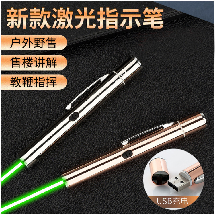 제조업체 인기상품 USB 미니 보조배터리 적색 및 녹색 레이저 손전등 야외 지시용 모형 지도 판매용 펜 다기능스토어 가기