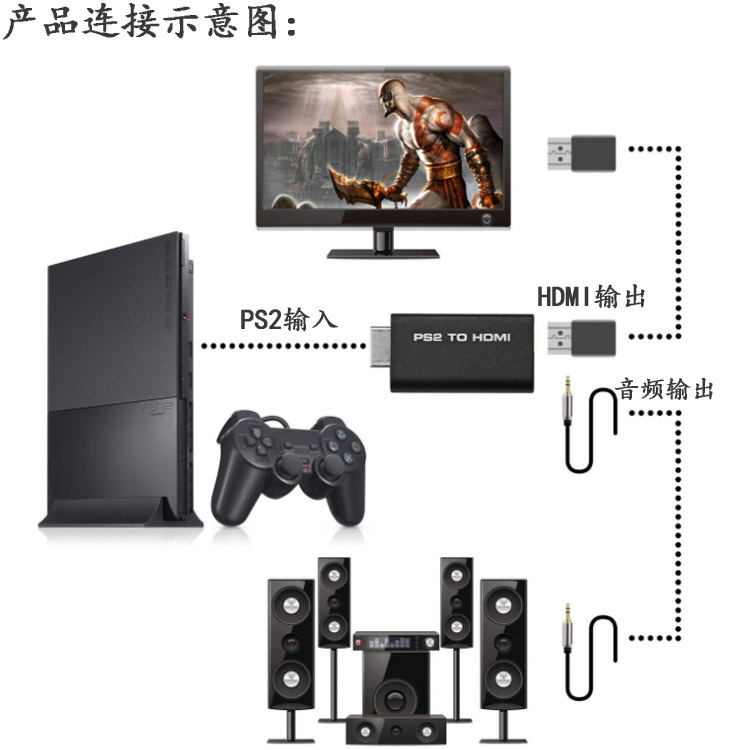 PS2 HDMl 어댑터 PS2 에 HDMI PS2 오디오 및 비디오 컨버터 게임 인터페이스