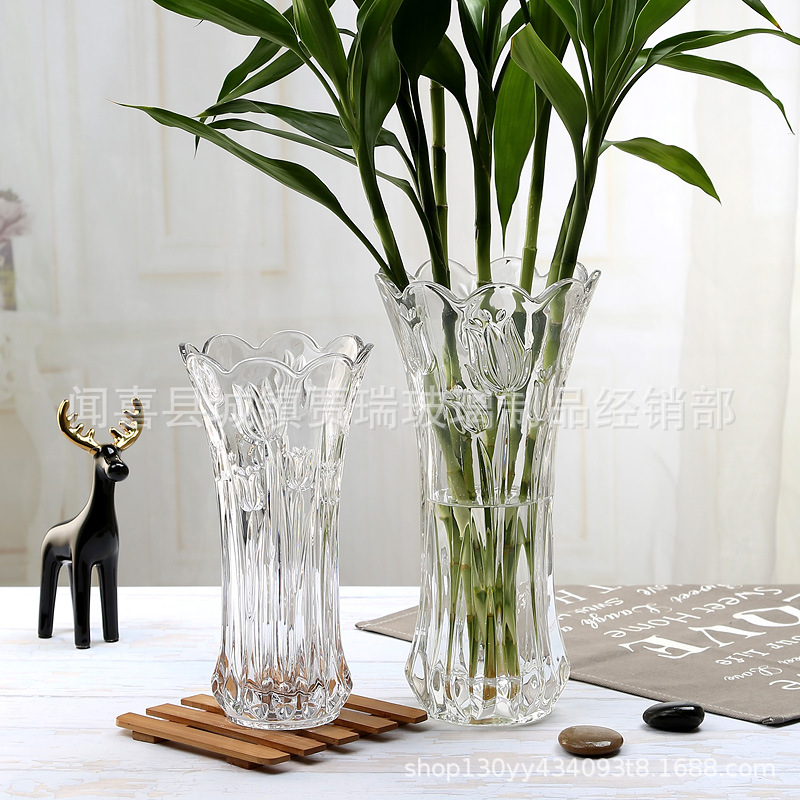 도매 투명 두꺼운 크리스탈 유리 꽃병 꽃 풍부한 대나무 꽃꽂이 간단 현대 꽃 병스토어 가기
