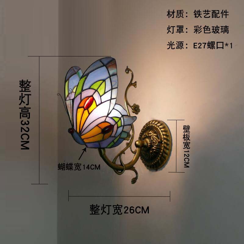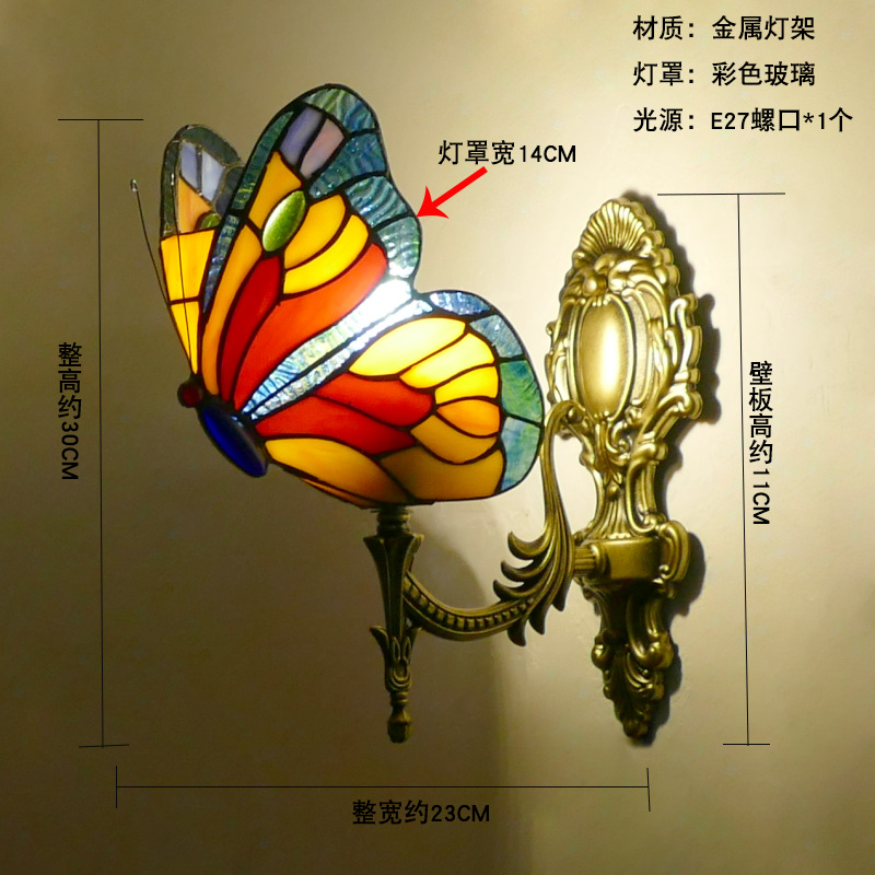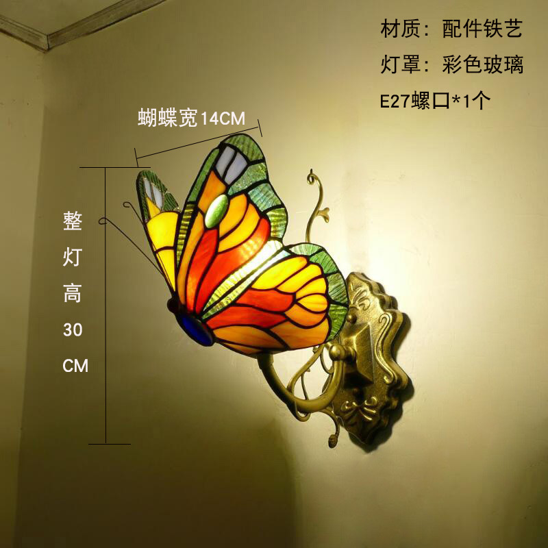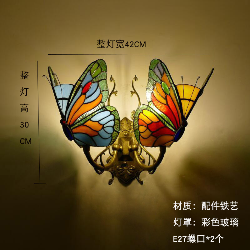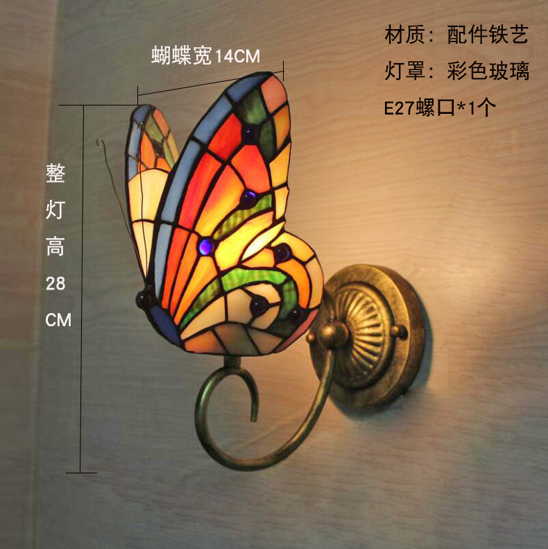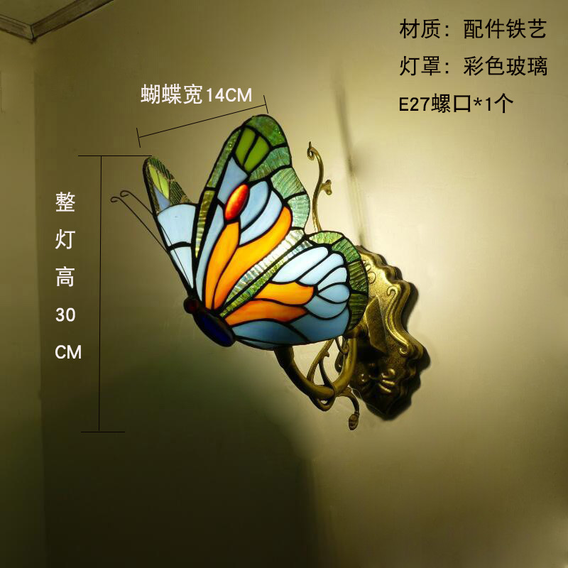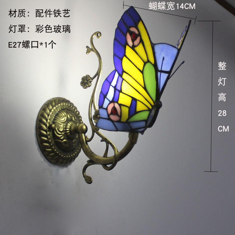 유럽과 미국 나비 통로 벽 램프 컬러 유리 창조적 인 램프 침실 침대 옆 통로 유럽 목회 바 벽 램프