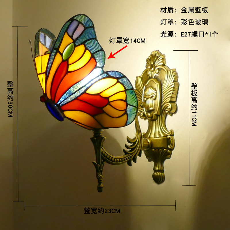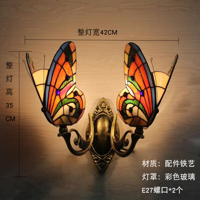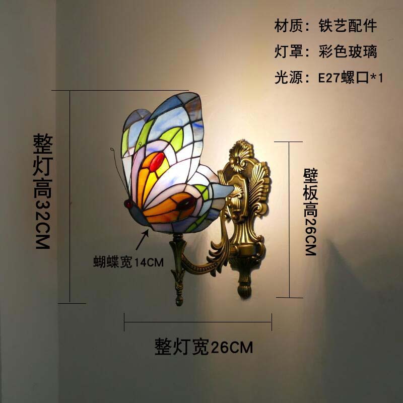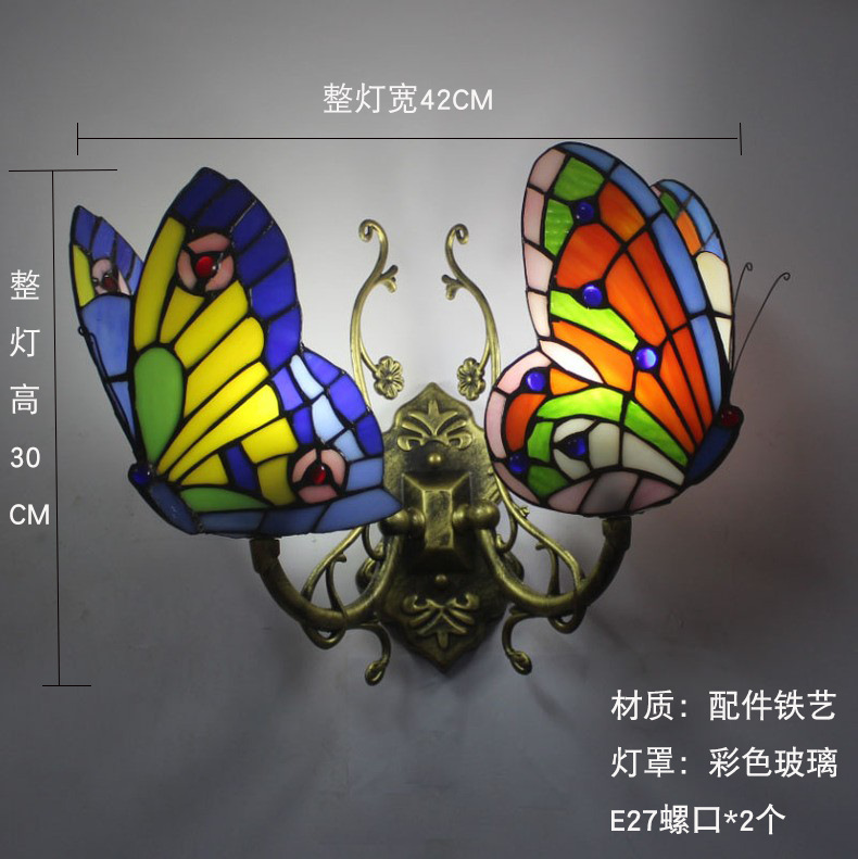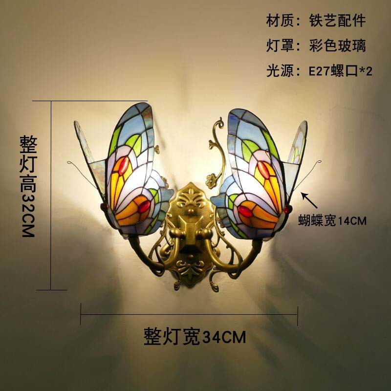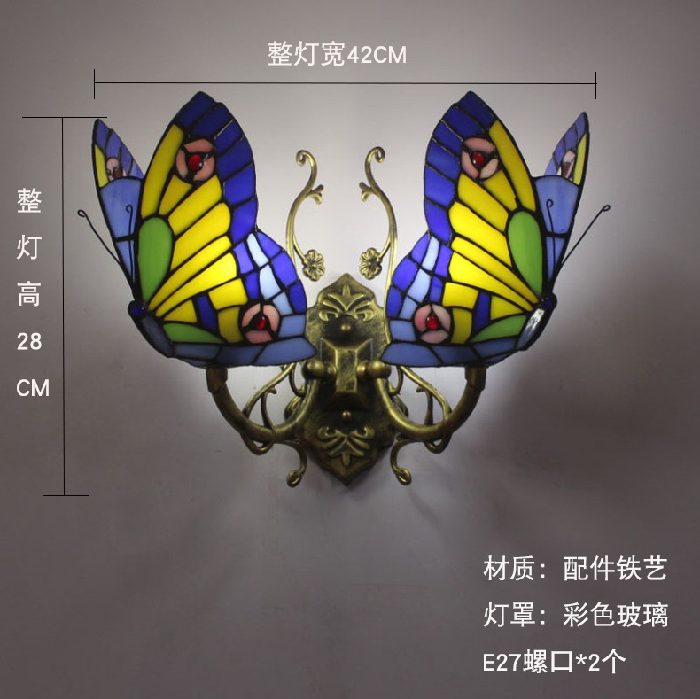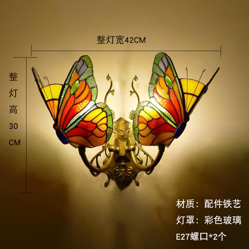 유럽과 미국 나비 통로 벽 램프 컬러 유리 창조적 인 램프 침실 침대 옆 통로 유럽 목회 바 벽 램프