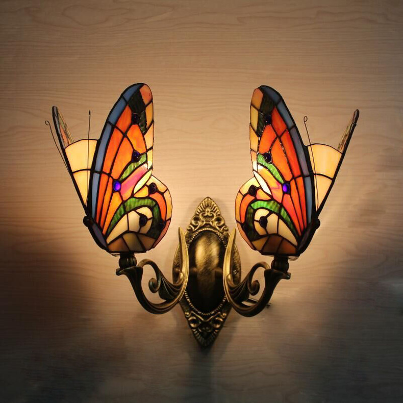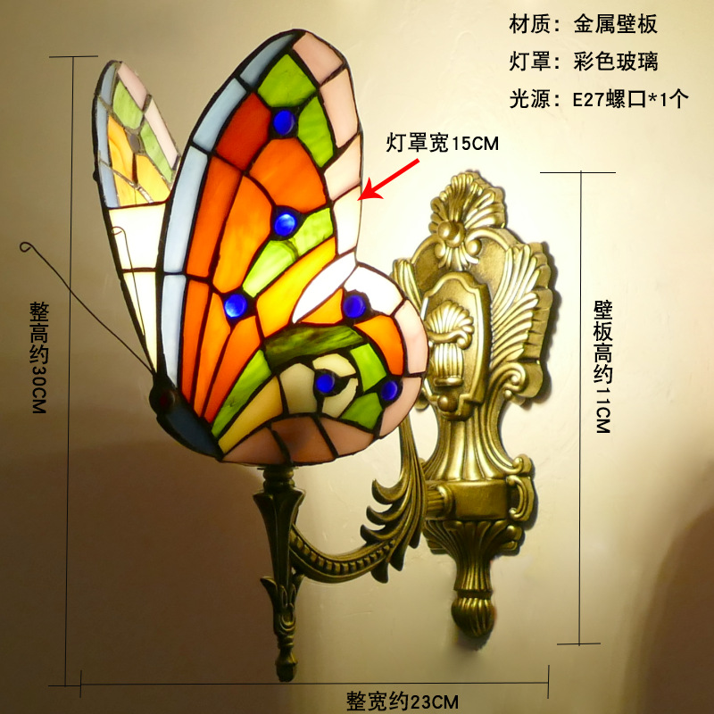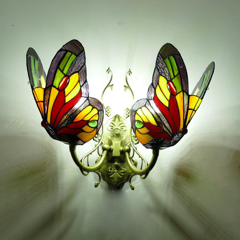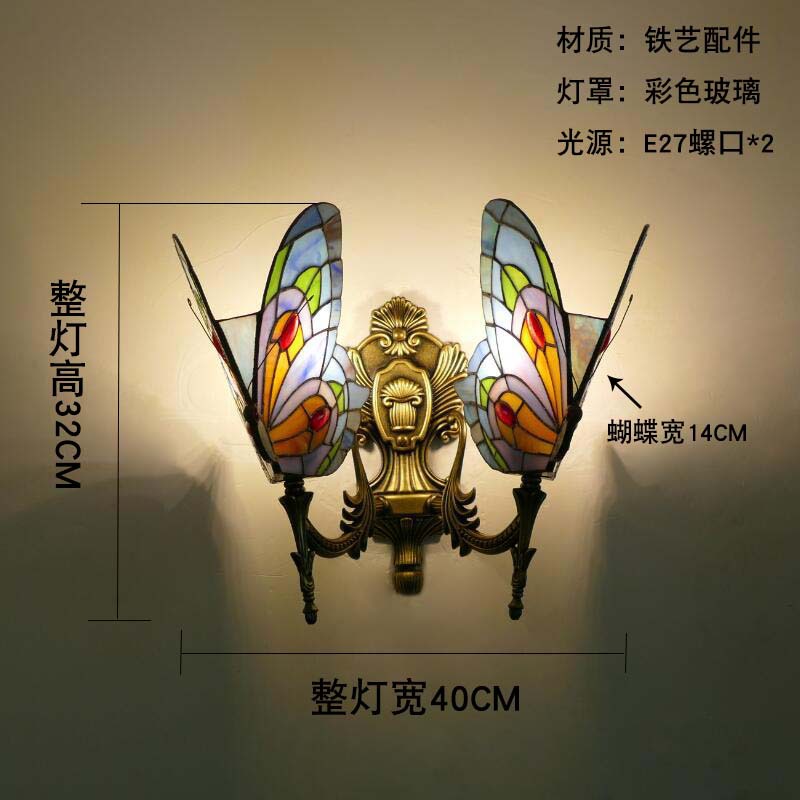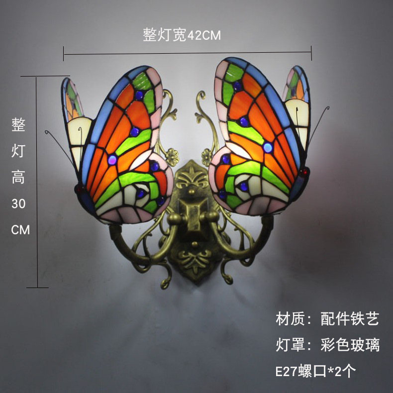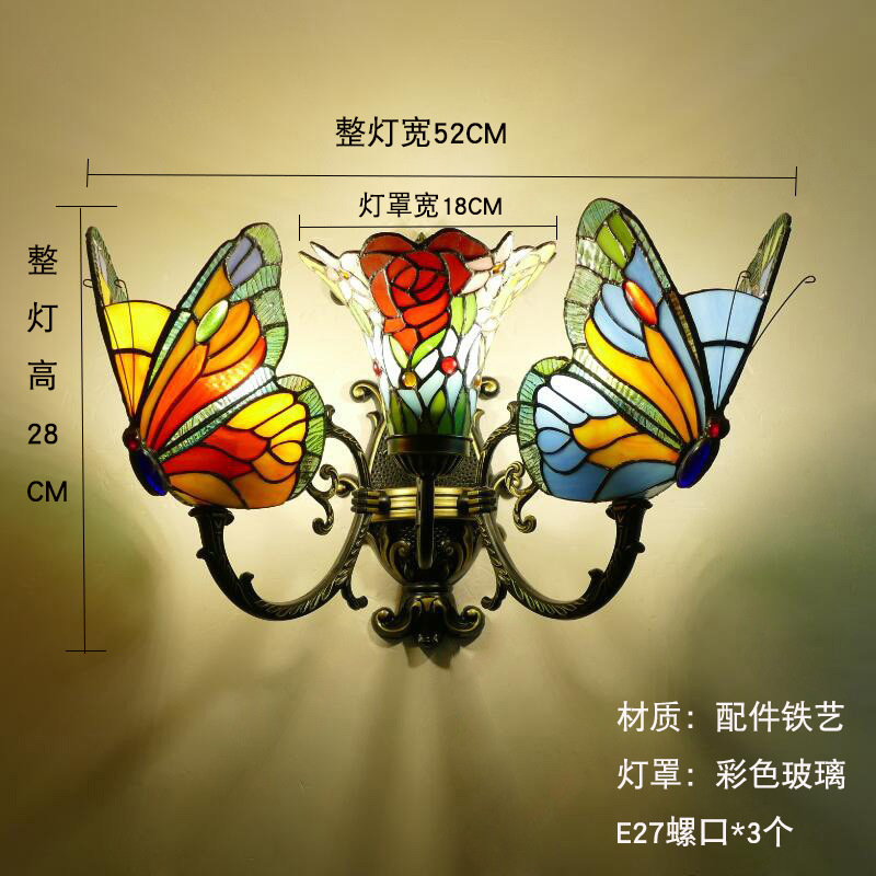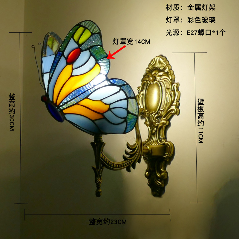 유럽과 미국 나비 통로 벽 램프 컬러 유리 창조적 인 램프 침실 침대 옆 통로 유럽 목회 바 벽 램프