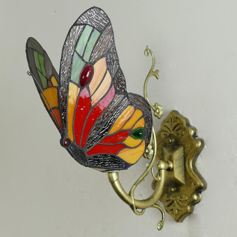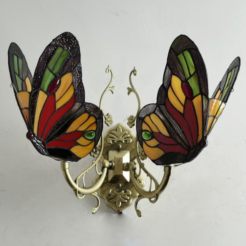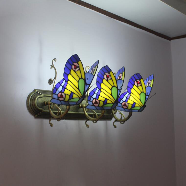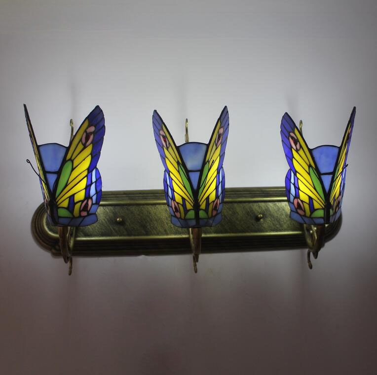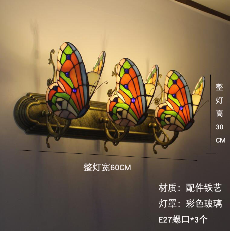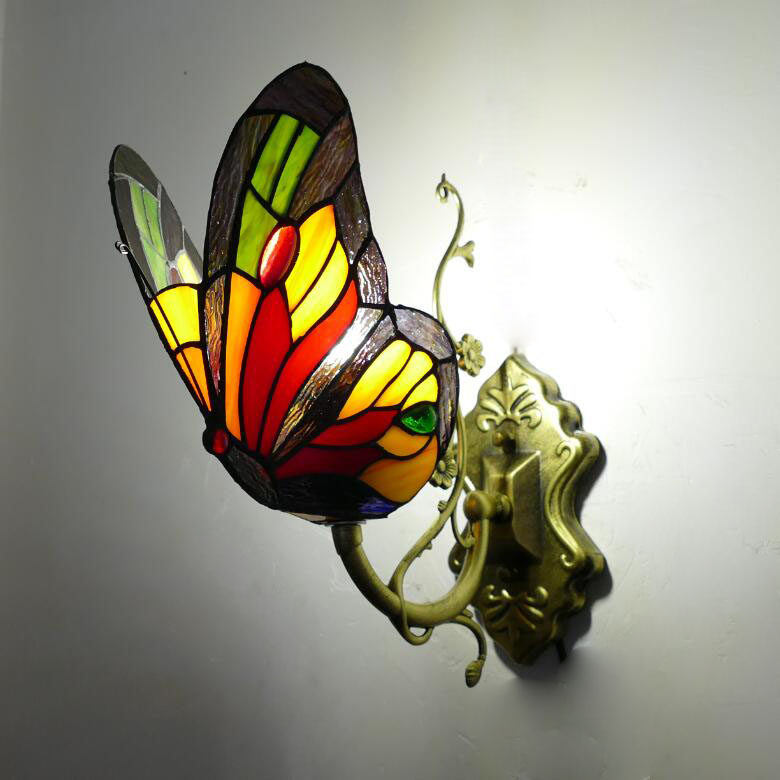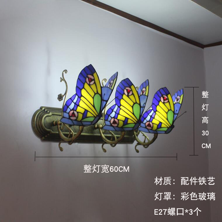 유럽과 미국 나비 통로 벽 램프 컬러 유리 창조적 인 램프 침실 침대 옆 통로 유럽 목회 바 벽 램프스토어 가기