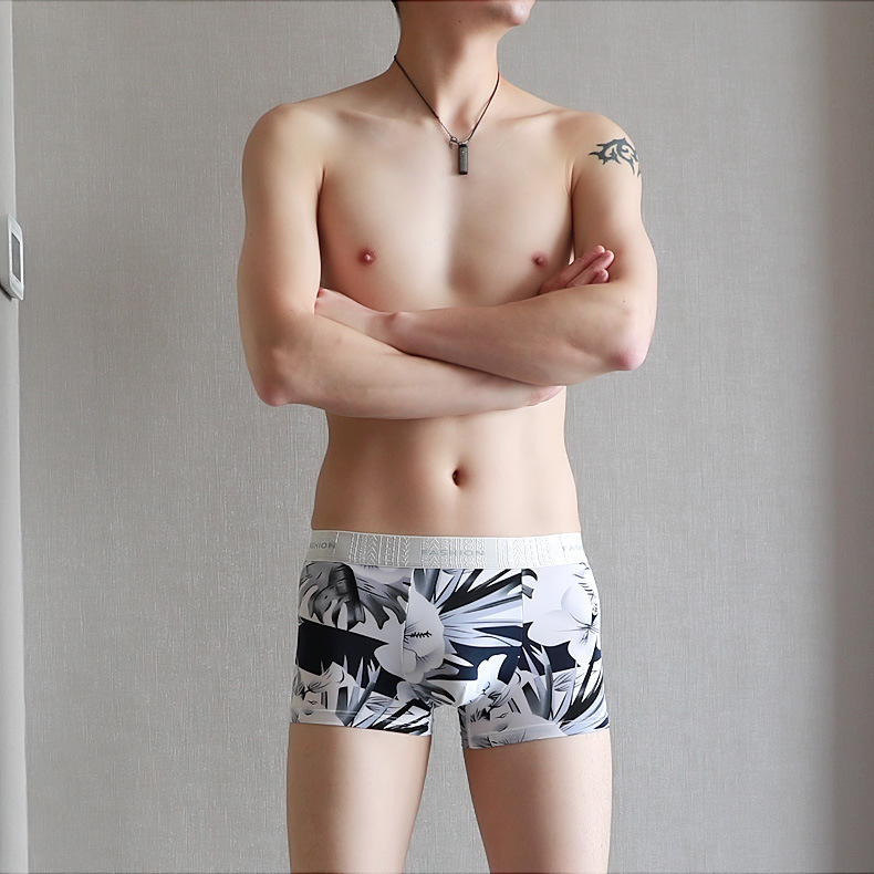 여름 트렌드 얇은 얼음 실크 남성 속옷 사각 통기성 편안한 인쇄 항균 짧은 속옷 머리카락의 세대스토어 가기