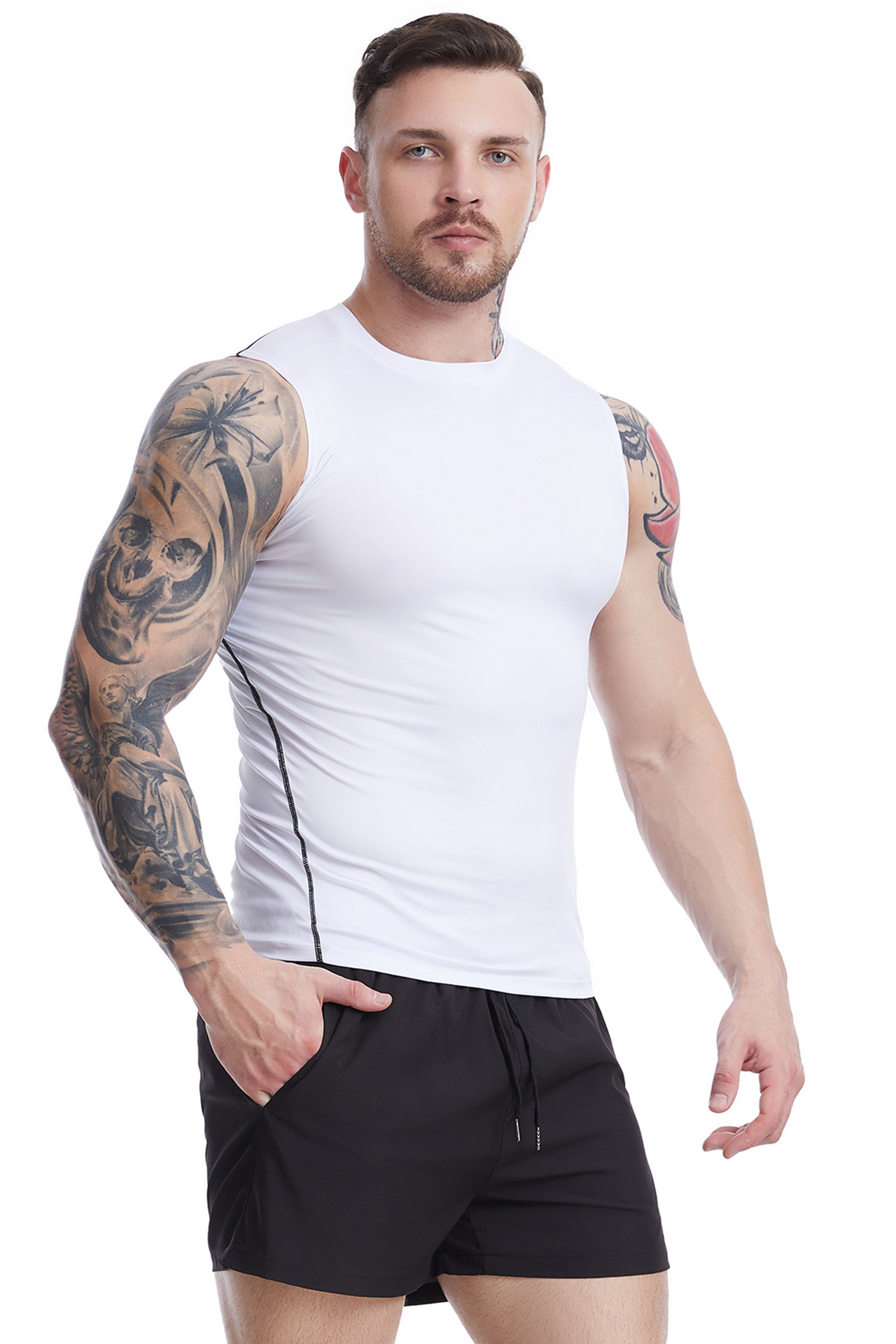 [클리어런스 가격] 스포츠 조끼 남성 여름 고탄성 꽉 끼는 민소매 피트니스웨어 트레이닝 러닝 속건 조끼