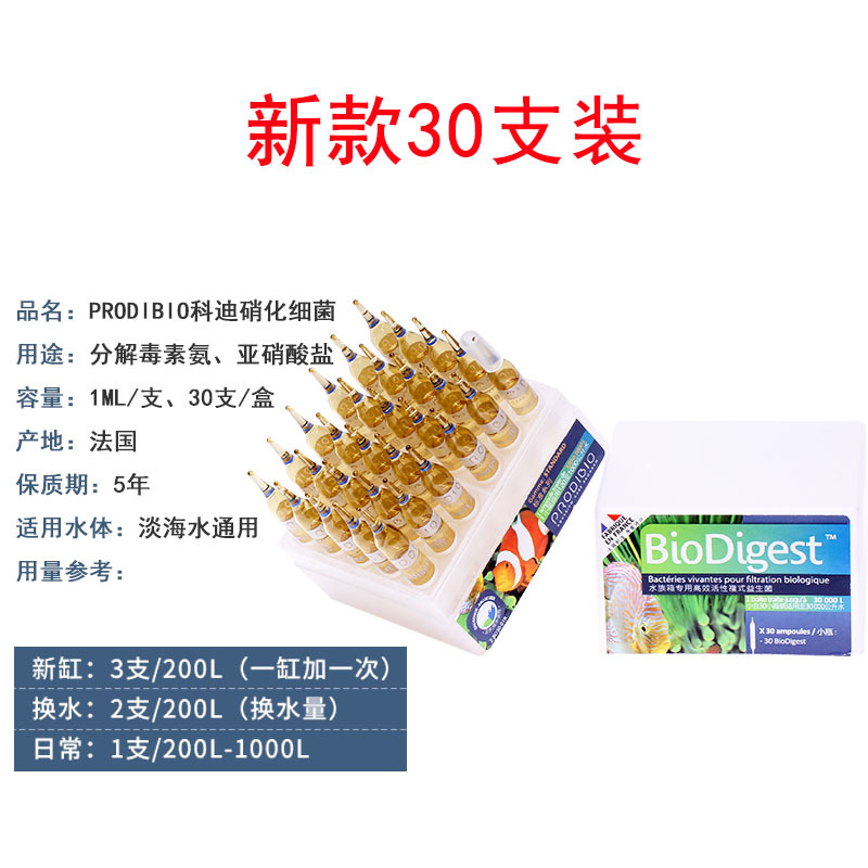 硝化细菌,适合于开新缸,1支可以开4个30x30左右的新鱼缸。如果平时鱼缸水质变差浑浊,用1/4支,每瓶多供1000公升水族箱用。