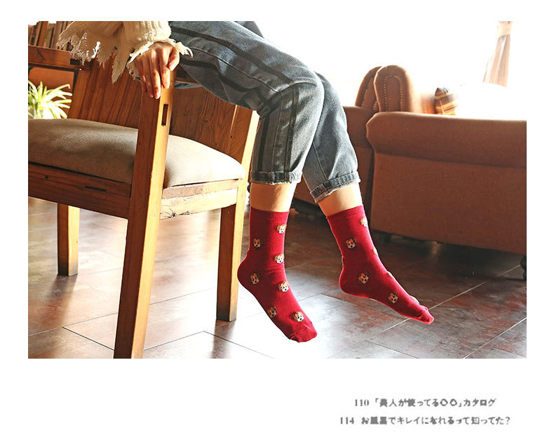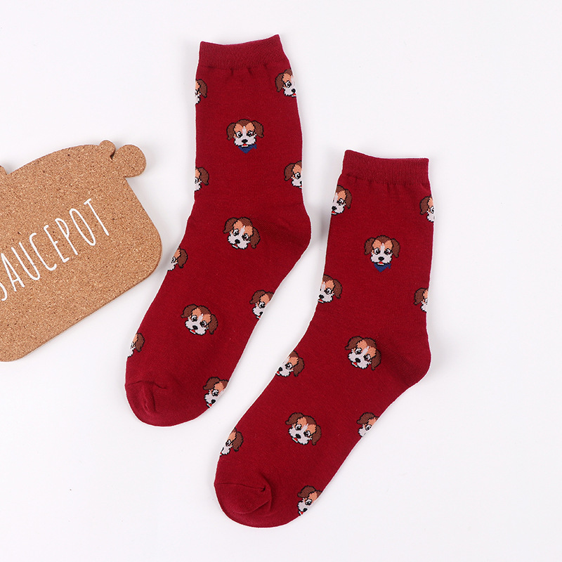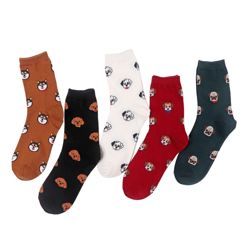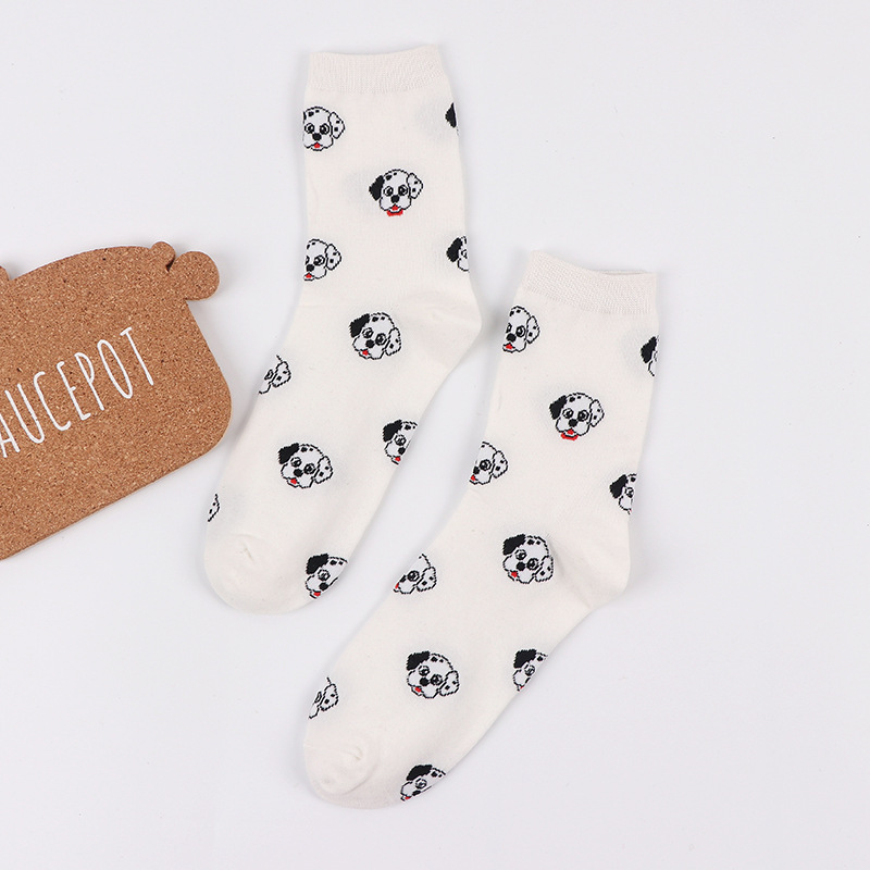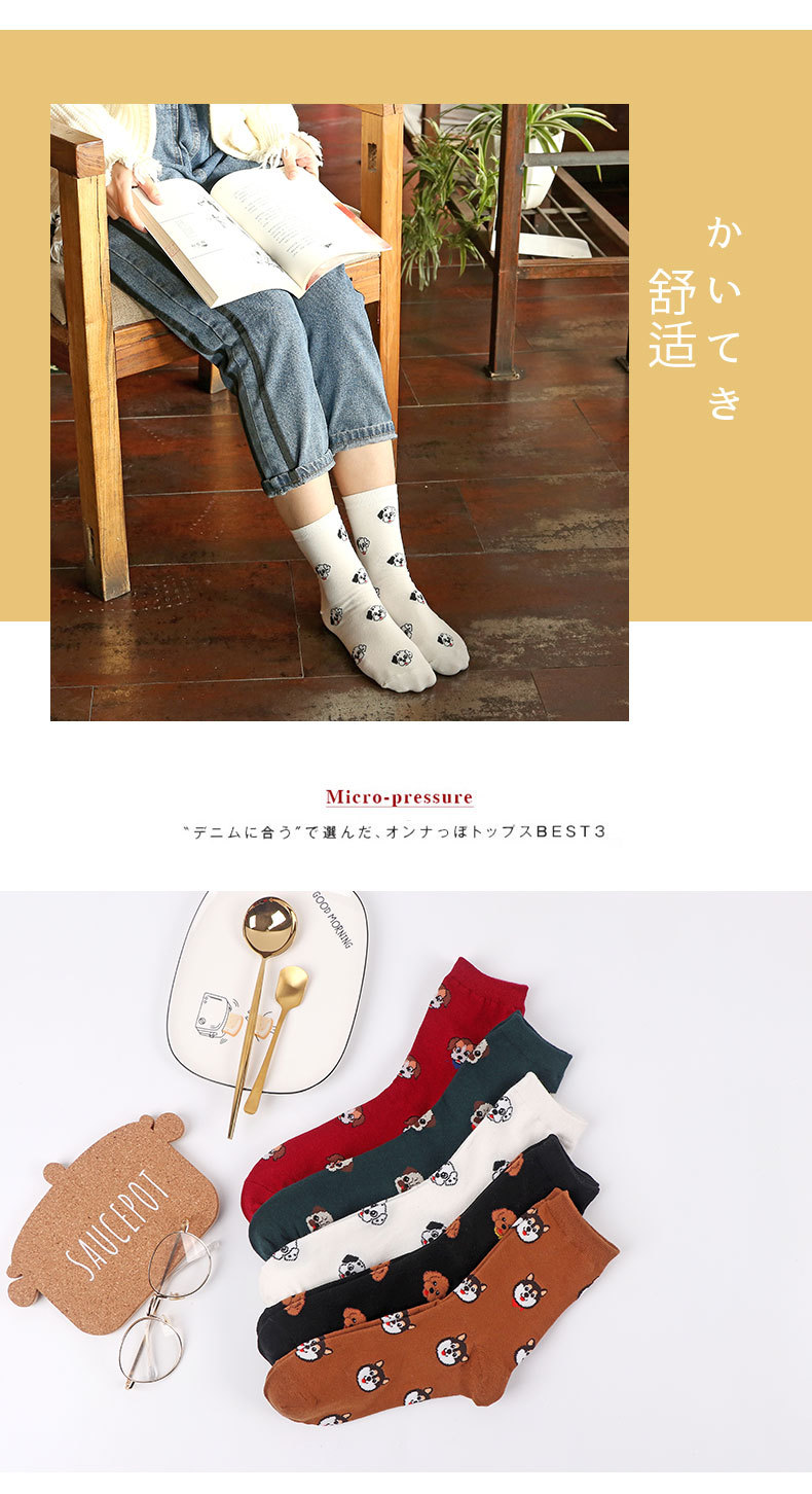 가을과 겨울 새로운 양말 여성의 중간 송아지 양말 만화 개 귀여운 면화 여성 양말 일본면 양말 봄 도매