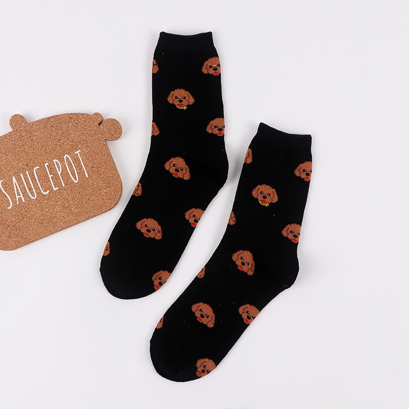 가을과 겨울 새로운 양말 여성의 중간 송아지 양말 만화 개 귀여운 면화 여성 양말 일본면 양말 봄 도매스토어 가기