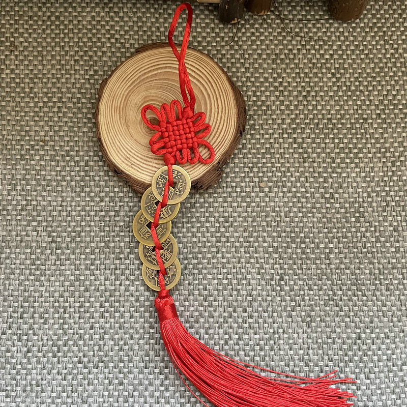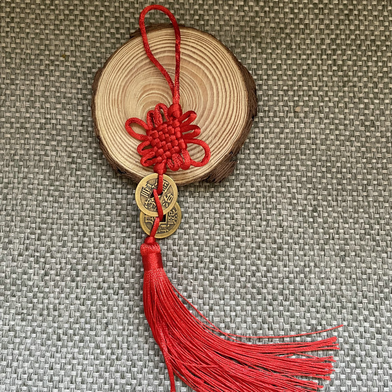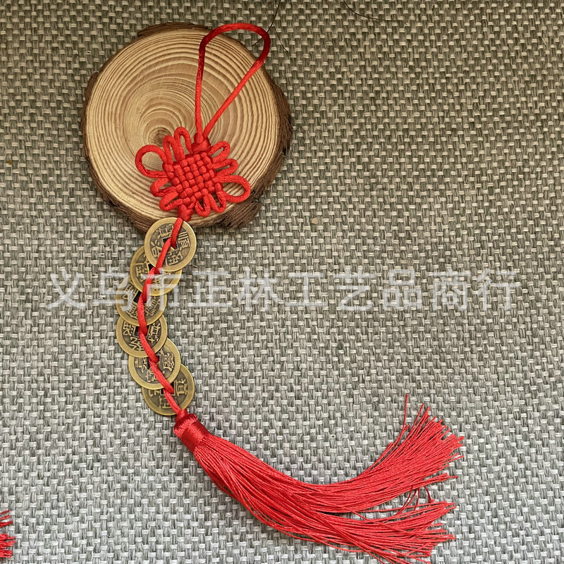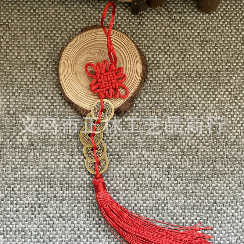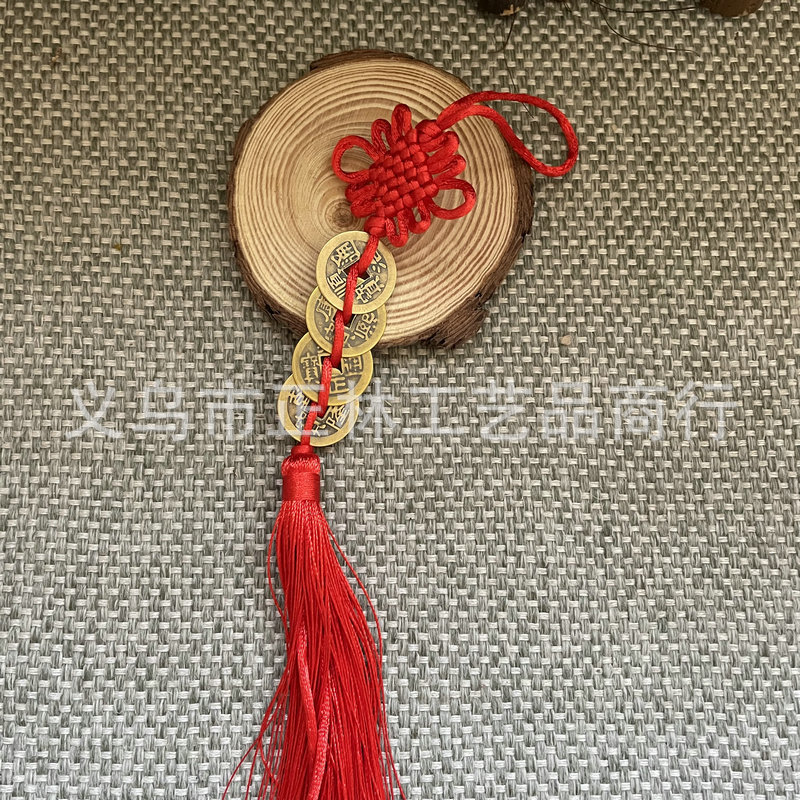 골동품 동전 펜던트 중국 매듭 다섯 황제 구리 술 자동차 펜던트 손으로 짠 중국 매듭 2.5cm스토어 가기