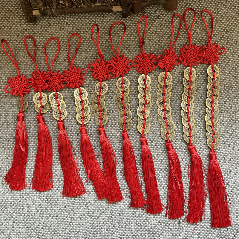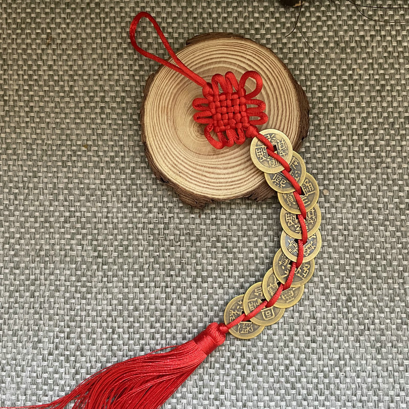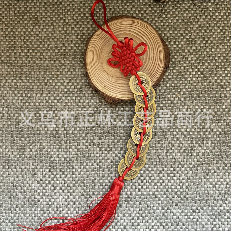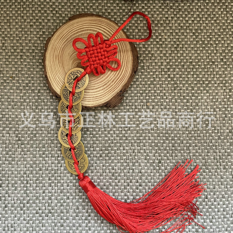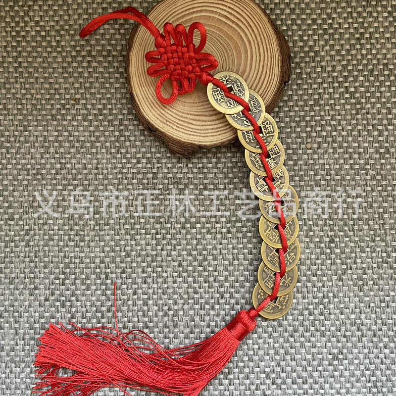 골동품 동전 펜던트 중국 매듭 다섯 황제 구리 술 자동차 펜던트 손으로 짠 중국 매듭 2.5cm스토어 가기