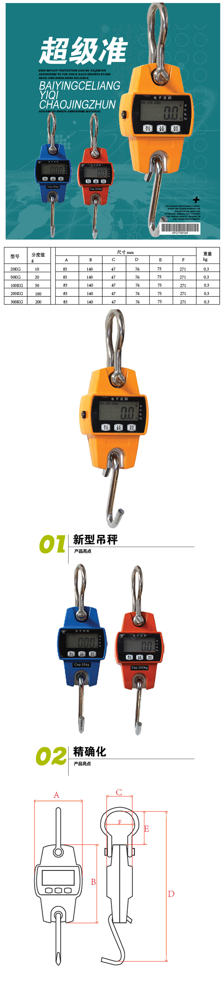 최고의 바이잉 전자 크레인 스케일, 미니 크레인 스케일, 50kg, 100kg, 200kg, 300kg, 블루투스 기능 포함스토어 가기