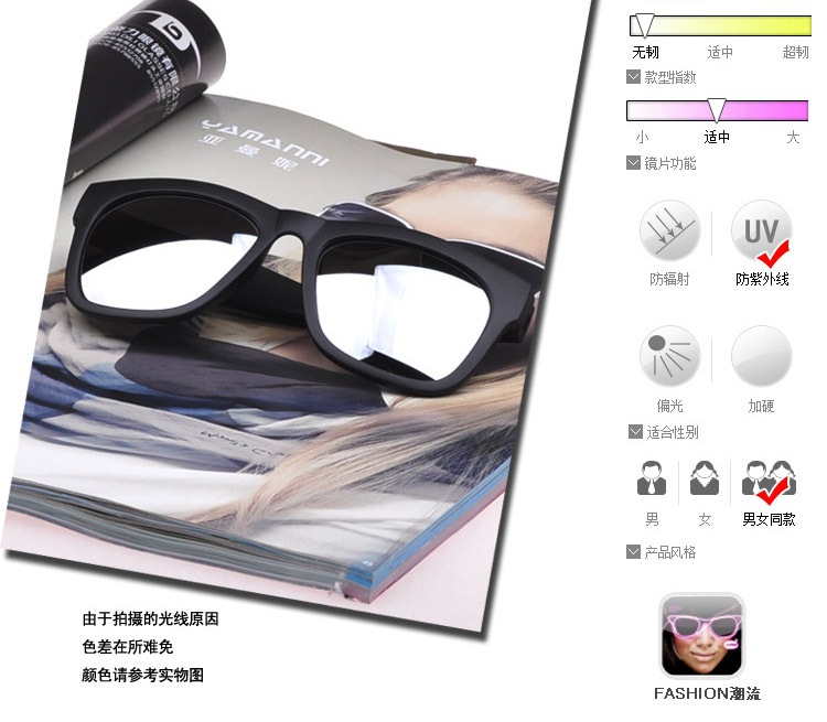 ???买家在收到货时,在3天内请仔细检查商品,如有镜架断裂、脱皮、镜片有大面积划痕的质量问题,可联系客服退换货,如超过3天本店不接受退换货。因为是厂家批发,我们无法保证每个产品都完好,有小的瑕疵问题,我们不接受退换货,还望谅解!我们拒绝暴利,拒绝中间商,让利润真正回归消费者!