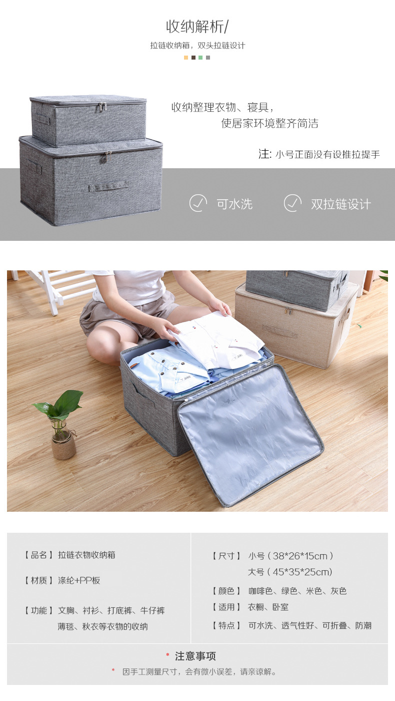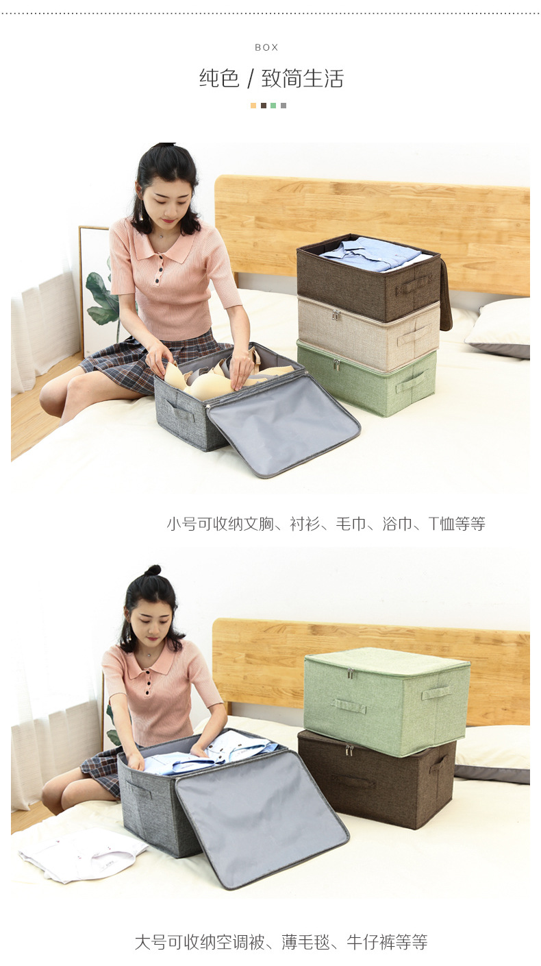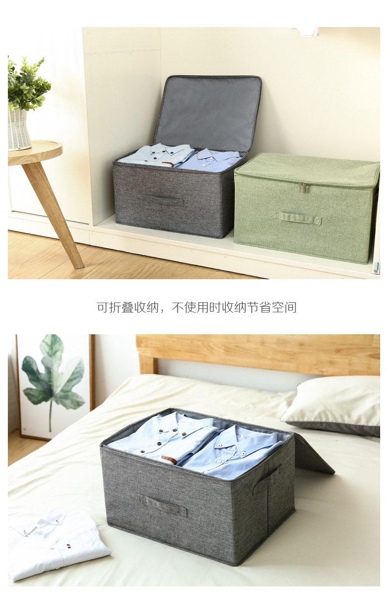 지퍼형 접이식 옷 수납함, 뚜껑이 있는 패브릭 수납함, 의류 정리용 천 수납함, 옷장용