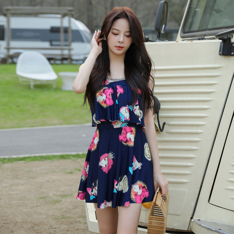 여성용 원피스 스커트 스타일 플러스 지방 수영복, 슬리밍, 작은 가슴, 배 커버, 여성용 온천 보수 복서 수영복, Piaoer Shu 8833