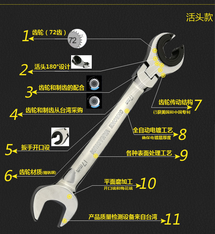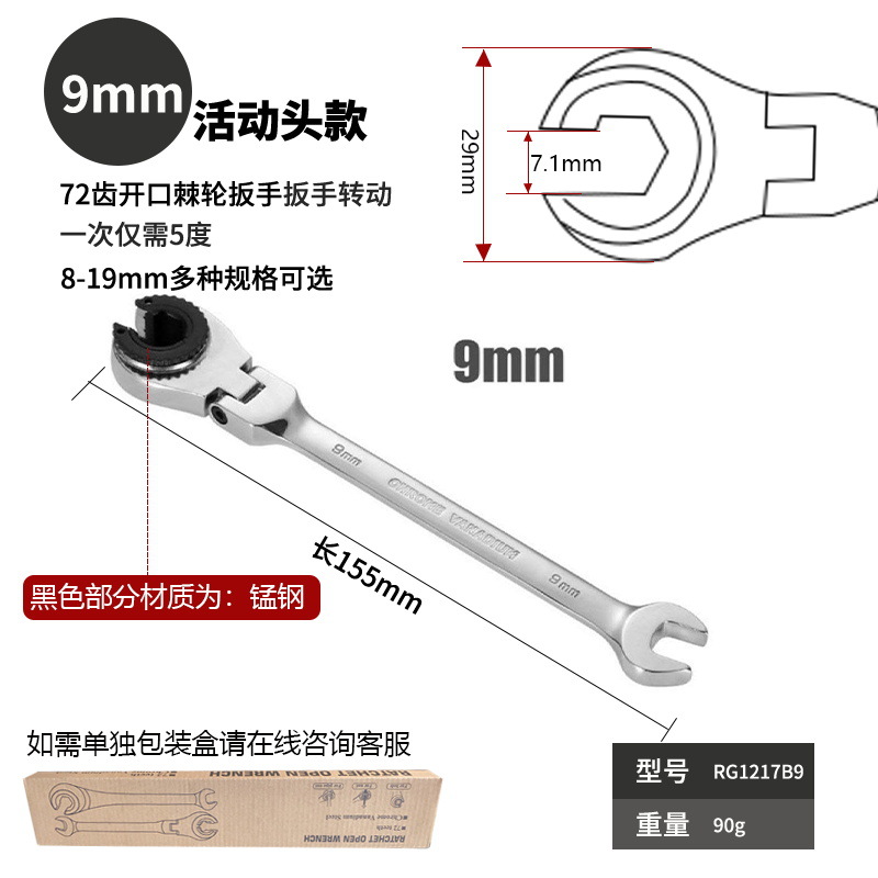새로운 회전식 오픈 엔드 튜브 래칫 렌치 Torx 범용 총검 퀵 래칫 오픈 이중 목적 렌치