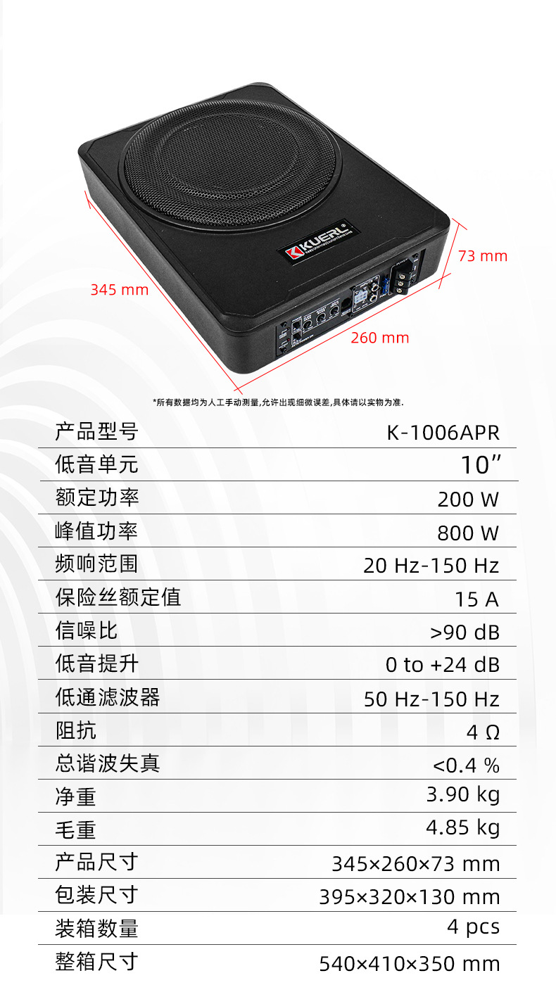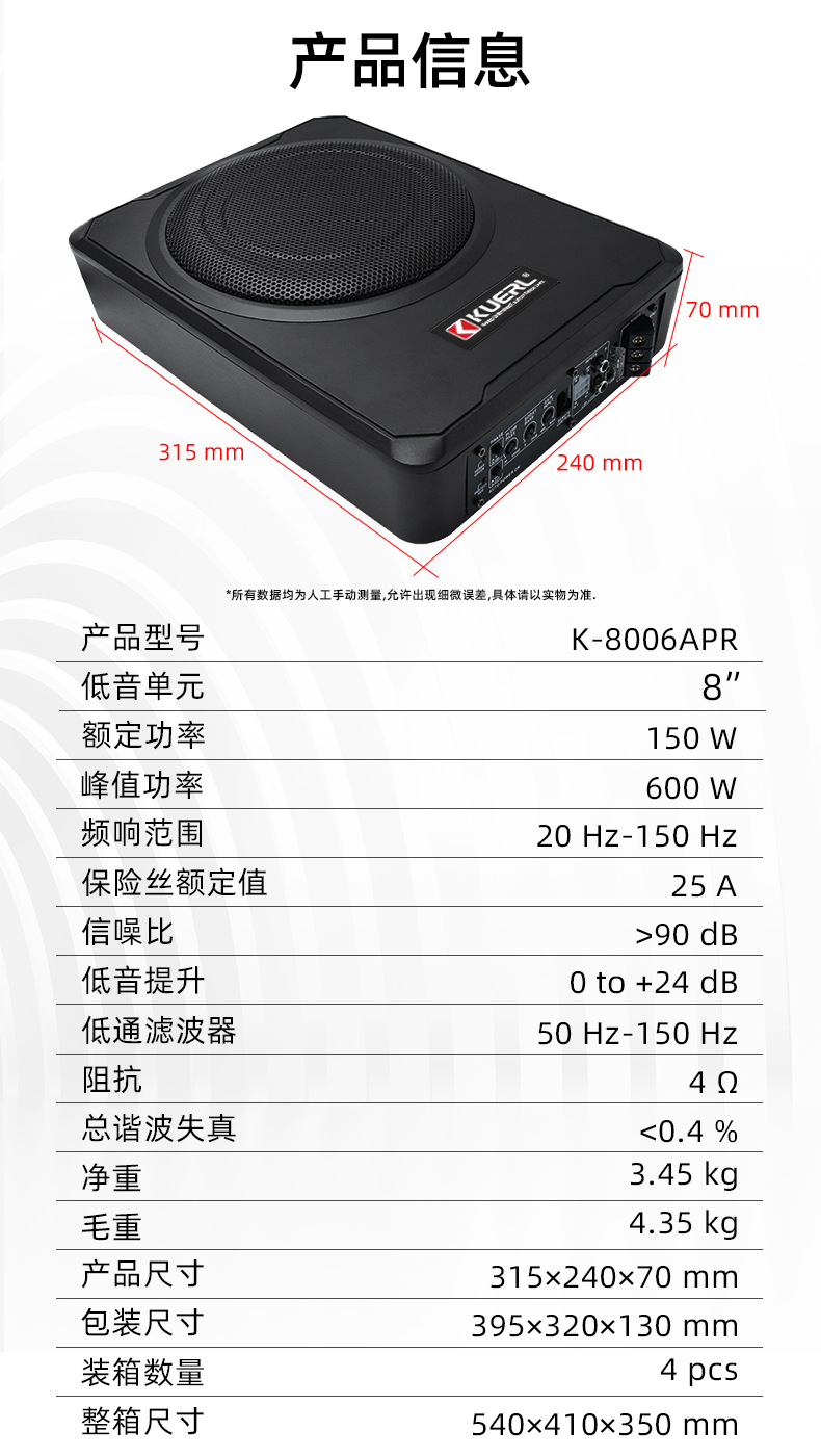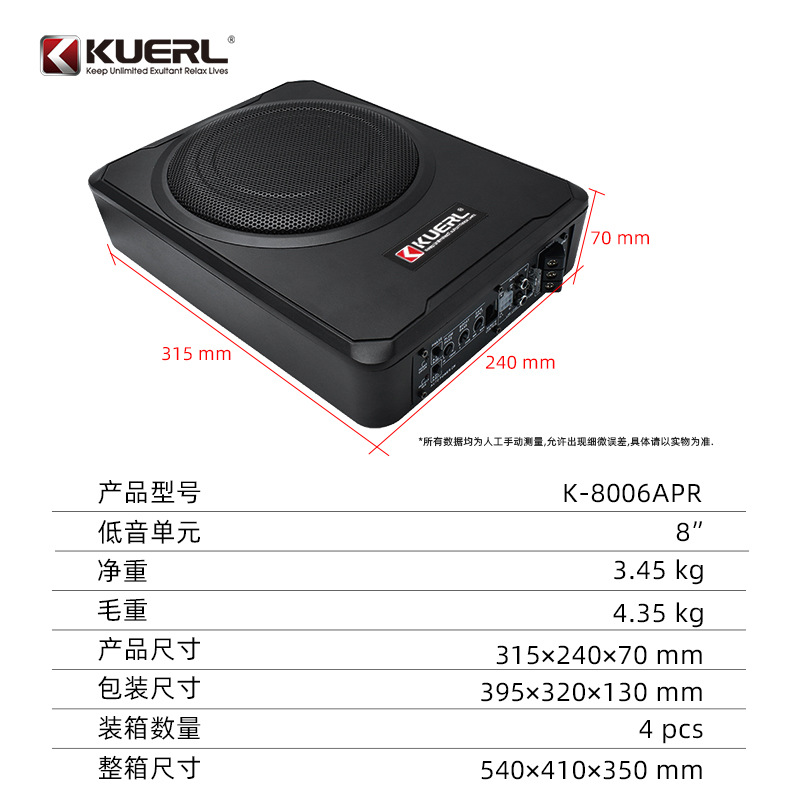 공장 직접 고출력 12v 순수베이스 자동차 오디오 수정 로우 스피커 8 인치 초박형 자동차 서브 우퍼