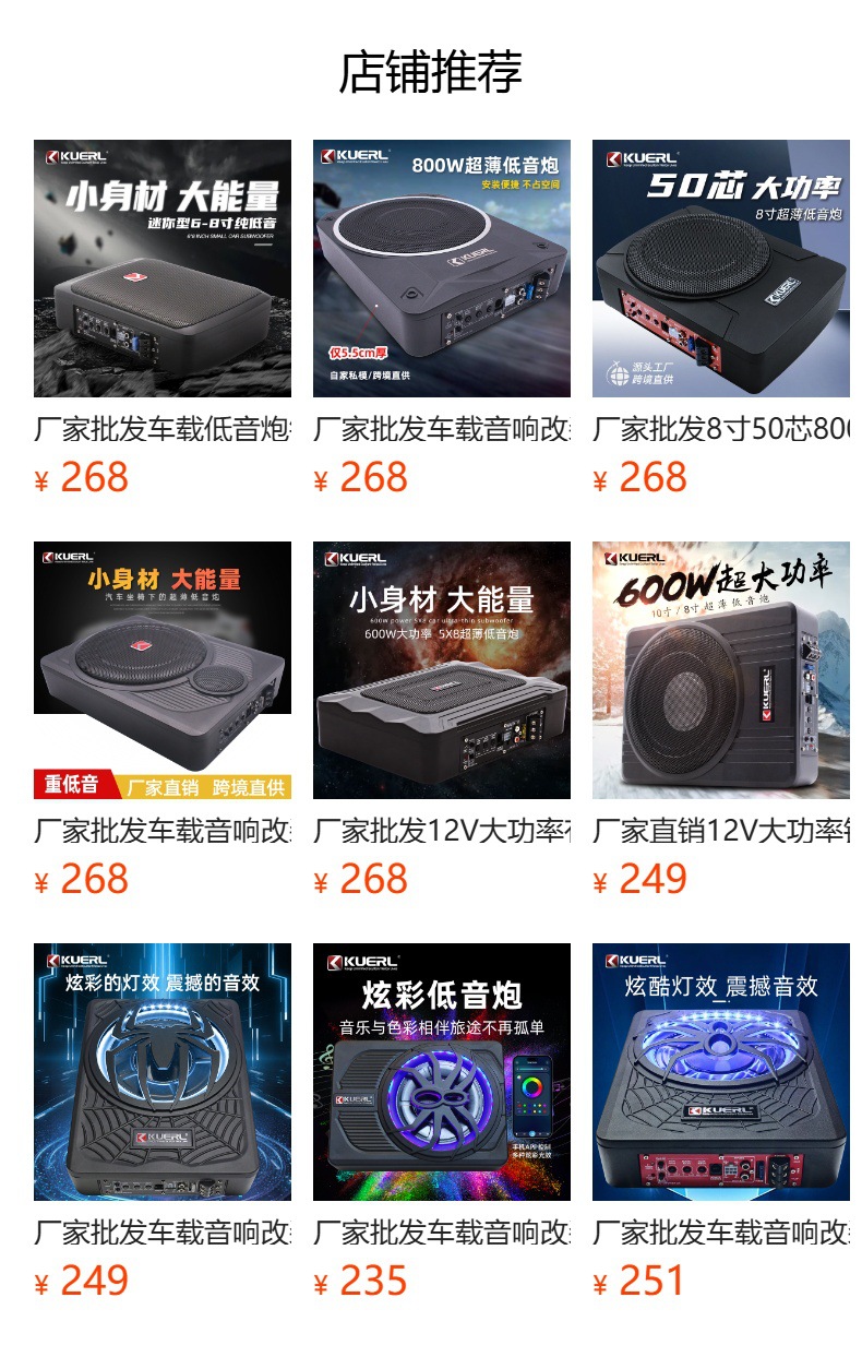 공장 직접 고출력 12v 순수베이스 자동차 오디오 수정 로우 스피커 8 인치 초박형 자동차 서브 우퍼스토어 가기