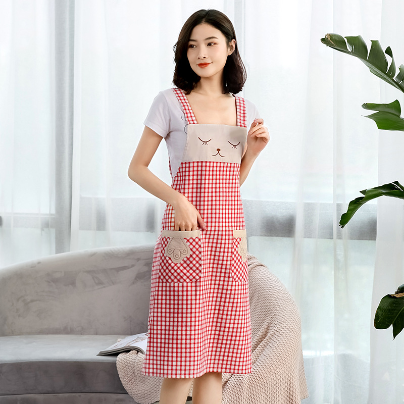 앞치마 바지 순면 한국 패션 가정용 주방 방수 내유성 방오 허리 작업복 앞치마 인쇄 여성스토어 가기