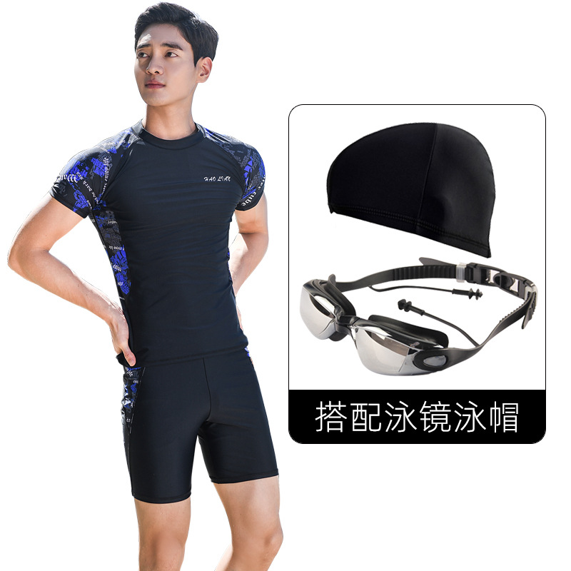 • 9577 반팔 셔츠 + 5 팬츠 (블랙) + 수경 + 수영 모자