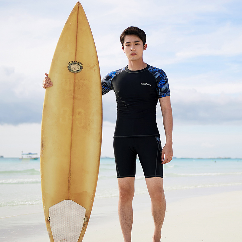 새로운 남성 수영복 5 개의 수영 트렁크 세트 짧은 소매 긴 자외선 차단제 빠른 건조 대외 무역 제조업체 도매 맞춤형 국경스토어 가기