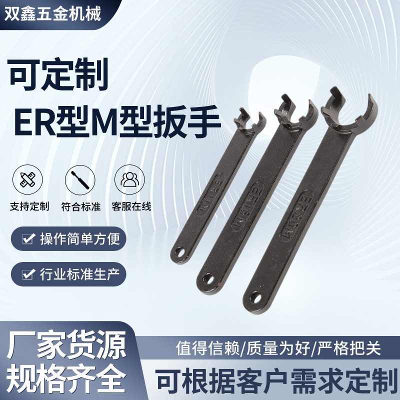 扬州市双鑫五金机械工具厂主营内六角扳手、内五角扳手、钩形扳手、ER扳手、挡圈钳、刀架扳手、单头呆扳手、单头敲击梅花扳手、单头敲击呆扳手、卡盘扳手等。客户可以定制非标工具。工厂产品品种齐全、价格合理。我们以“敬业、用心”的工作态度服务于客户,并通过与客户紧密地合作,为客户带来利益,以客户的满意为目标,并期待与新老客户建立长期的合作关系。希望通过不懈努力,进一步拓展公司发展空间,在以后的发展历程中会不断改进。